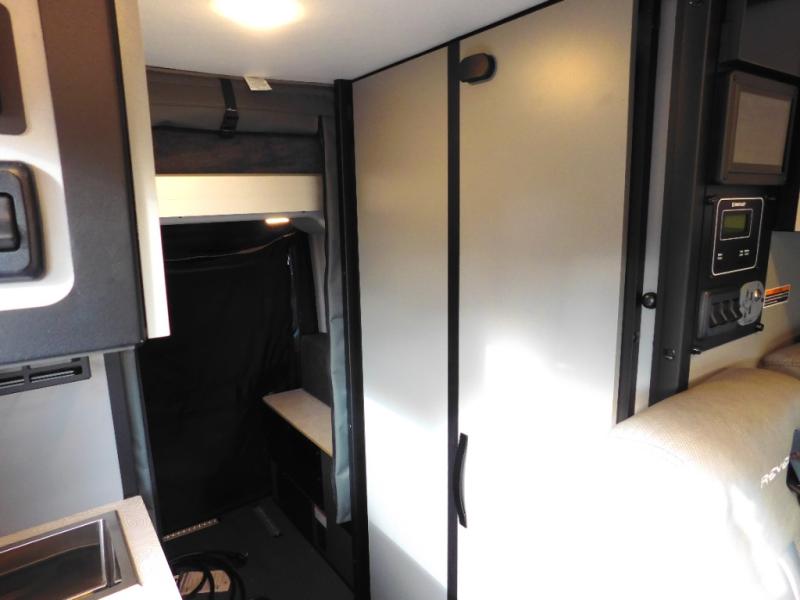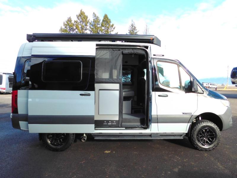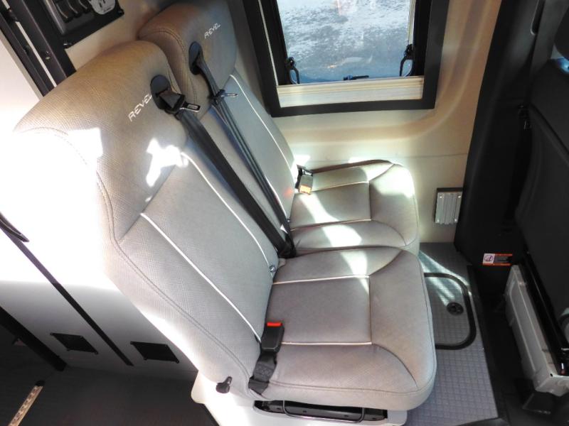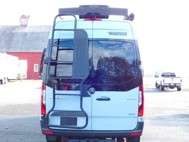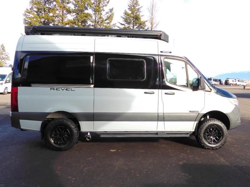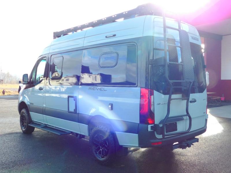 The Revel Class B diesel motorhomes allows you to venture off-road thanks to the AWD Sprinter chassis with 2.0L high-output turbo-diesel 4-cylinder under the hood. The Winnebago Power MAX system (8.4kWh Lithionics lithium-ion battery with dual alternator charging capability) and Power Hub Pro which is an exclusive 5-in1 system that delivers off-grid power like nothing before allowing you to stay off-grid for a few days. The interior provides a comfortable and relaxing space featuring modern decor including an updated galley with counter extension cover, a new wall-mounted table, an innovative wet bath, plus a power lift bed with WinnSleep® mattress technology, and the gear garage below the bed features L-track bases for secure and flexible storage, plus cabinet storage and more.