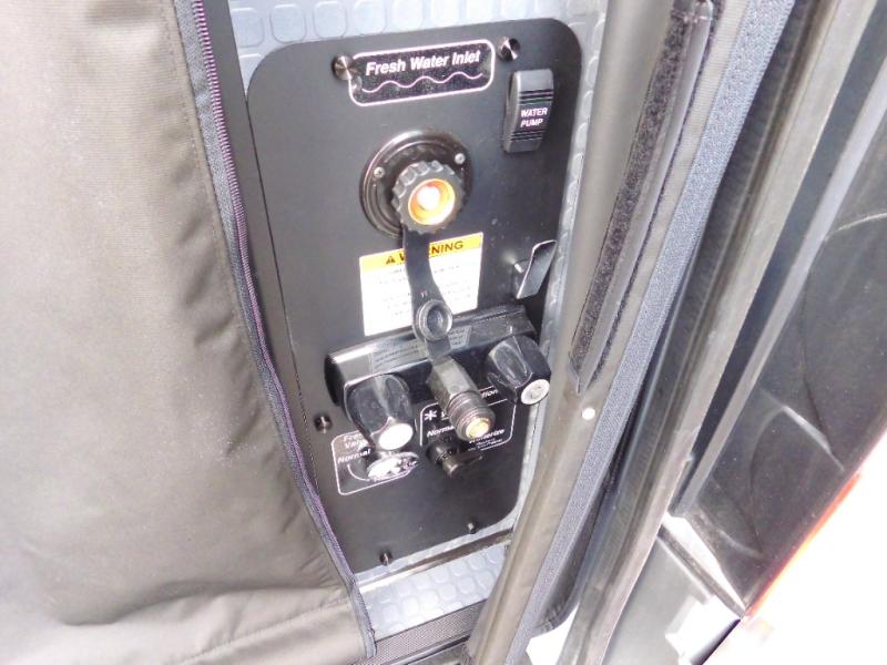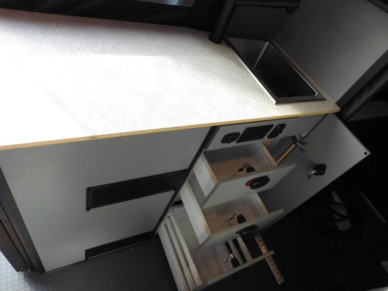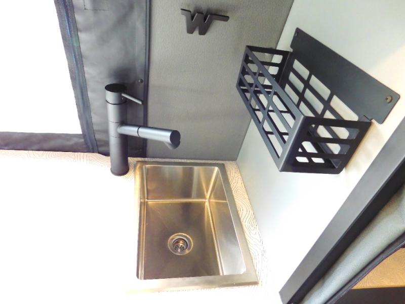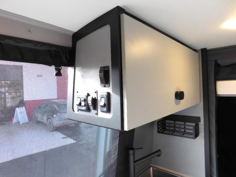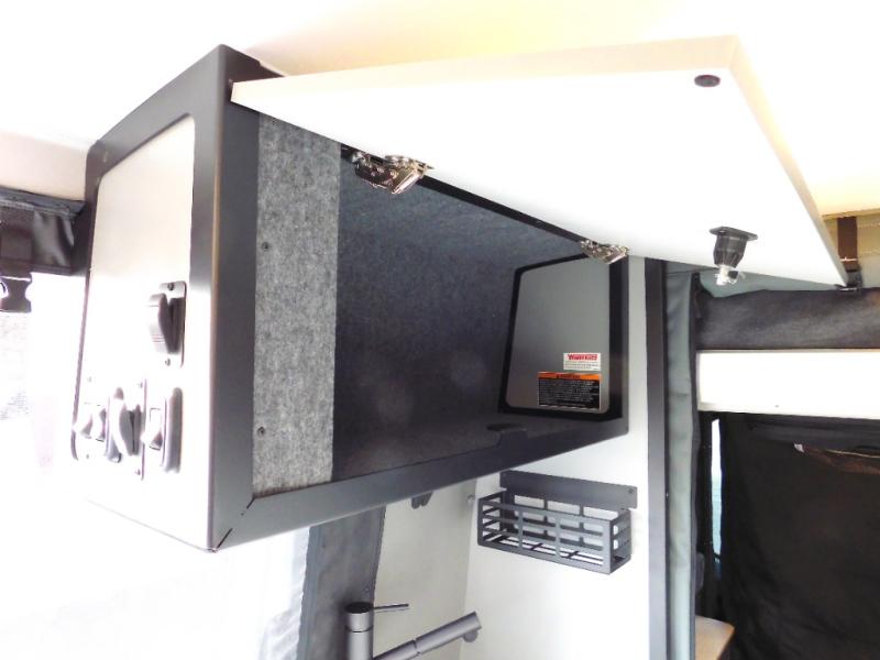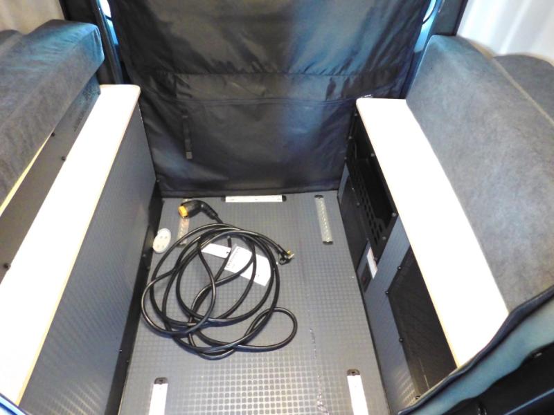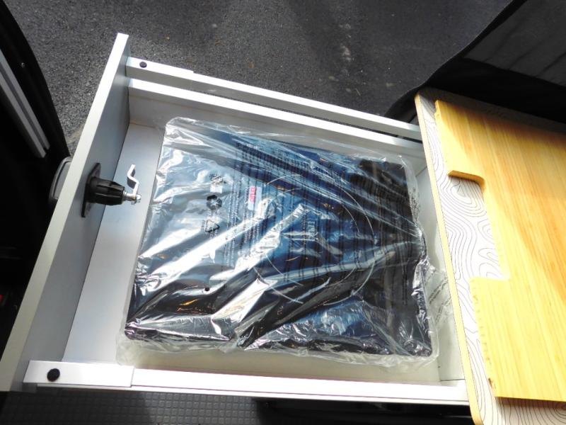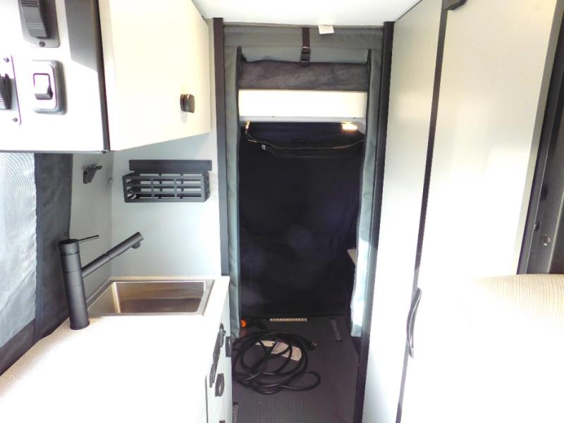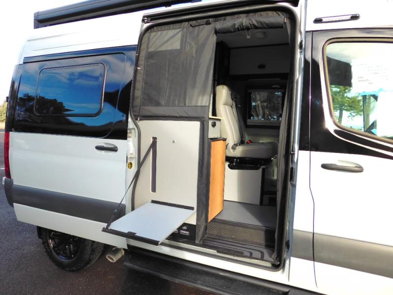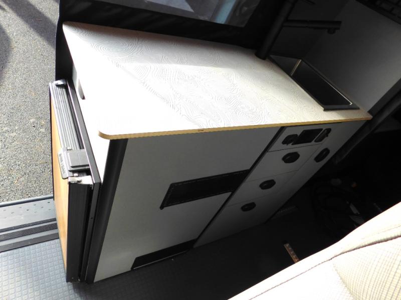 Looking for adventure yet not sure which road you'll take? This camper van offers the outdoor enthusiast a way to venture the unknown. Once at your destination, you can easily set up the interior including a power lift bed in the rear. The cab seats swivel around and there is a bench seat with adjustable table for easy dining opposite. There is even a fold-down outside table to dine outdoors if you want. You will find storage throughout including in the gear garage below the bed where you can store your hiking sticks and backpacks. The cook will have a portable single induction range top, a stainless-steel sink, and a counter extension for more prep space plus a refrigerator below the counter. There is also a wet bath to stay clean and refreshed!