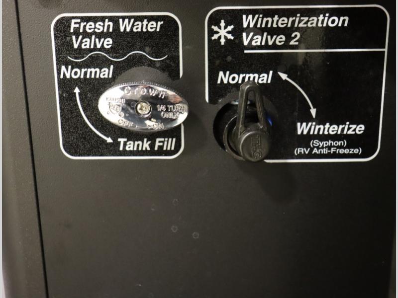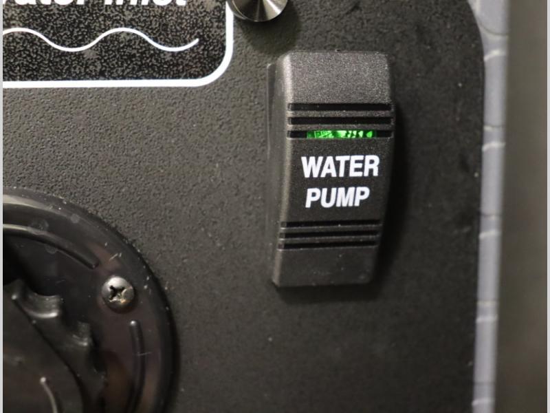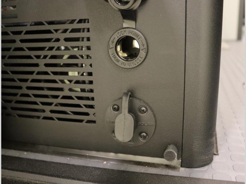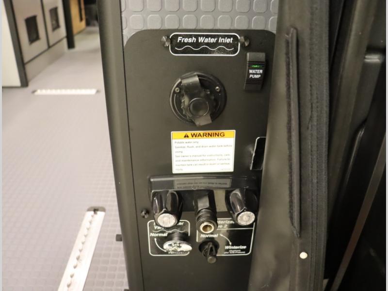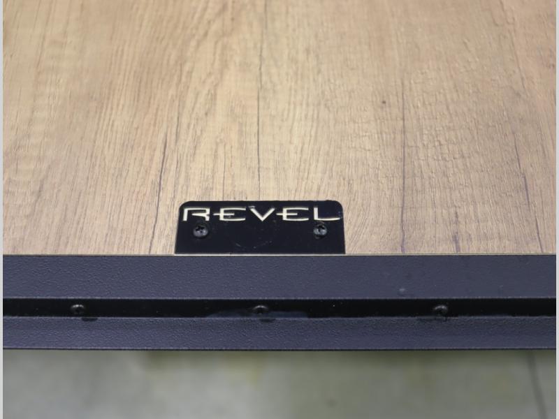 Storage and living space are maximized by the flared body and Power Lift Bed that converts to a sleeping surface. Welded aluminum cabinet face frames, dual pane windows with insulated shades, and an available quieter Mach 10 NDQ AC system all contribute to the Revel's off the grid livability.