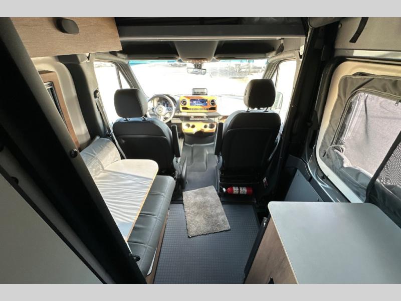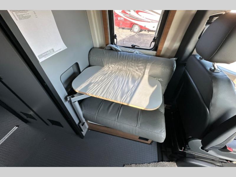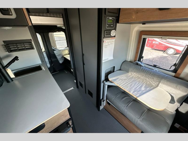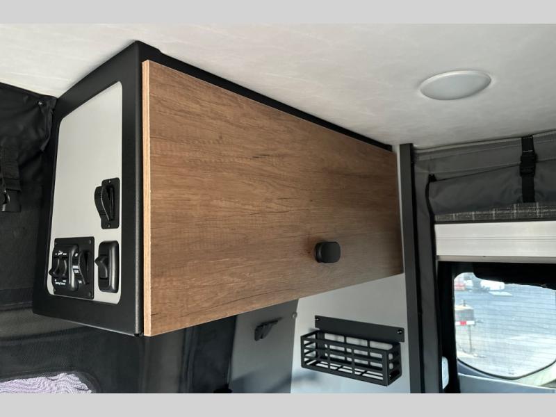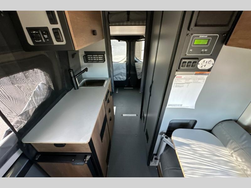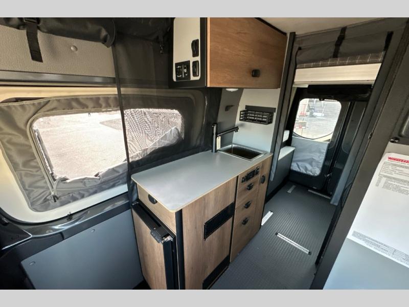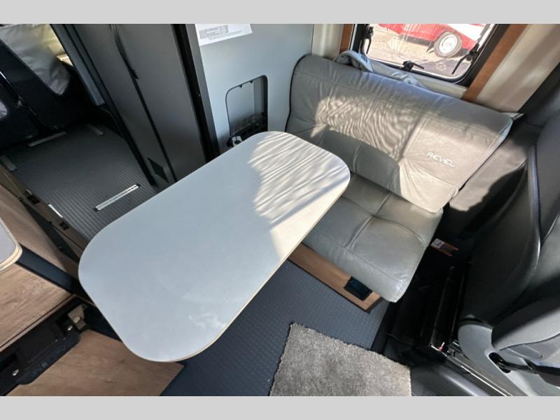 The Revel Class B diesel motorhome allows you to venture off-road thanks to the AWD Sprinter chassis with 2.0L high-output turbo-diesel 4-cylinder under the hood. The Winnebago Power MAX system (8.4kWh Lithionics lithium-ion battery with dual alternator charging capability) and Power Hub Pro which is an exclusive 5-in1 system that delivers off-grid power like nothing before allowing you to stay off-grid for up to 7 days. The interior provides a comfortable and relaxing space featuring modern decor including an updated galley with compression-latch cabinets, a new wall-mounted table, an innovative wet bath, plus a power lift bed with WinnSleep® mattress technology, and the gear garage below the bed features L-track bases for secure and flexible storage, plus cabinet storage and more.