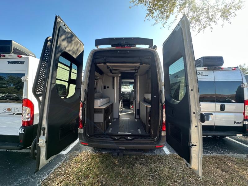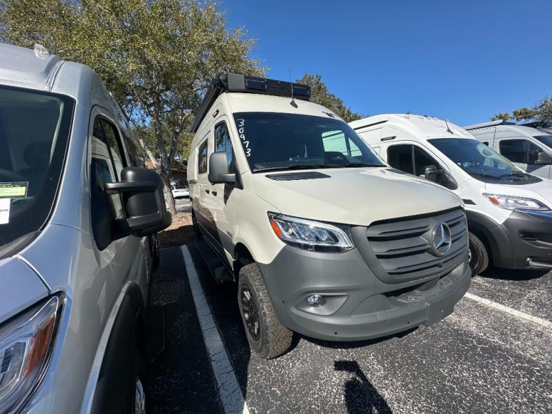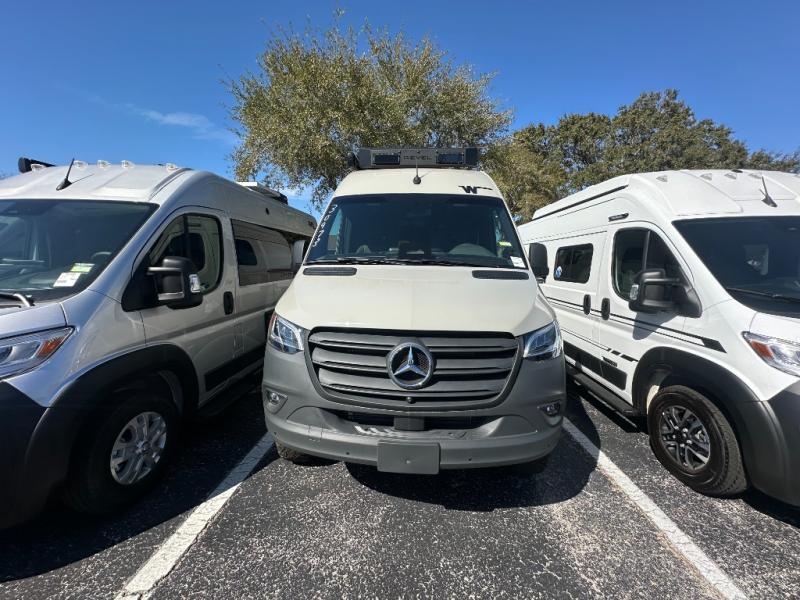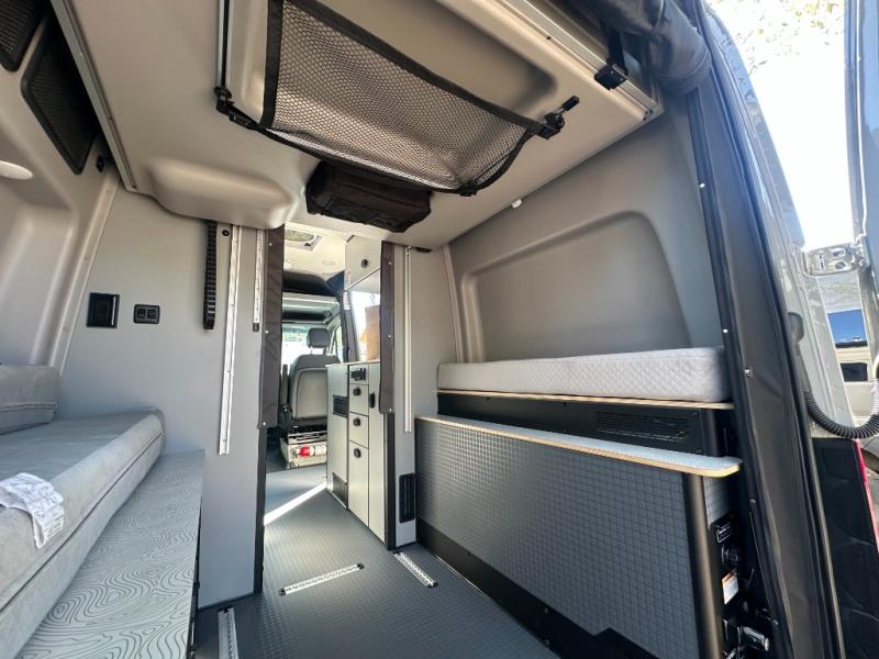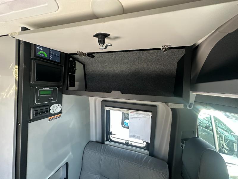 The Revel Class B diesel motorhomes allows you to venture off-road thanks to the AWD Sprinter chassis with 2.0L high-output turbo-diesel 4-cylinder under the hood. The Winnebago Power MAX system (8.4kWh Lithionics lithium-ion battery with dual alternator charging capability) and Power Hub Pro which is an exclusive 5-in1 system that delivers off-grid power like nothing before allowing you to stay off-grid for a few days. The interior provides a comfortable and relaxing space featuring modern decor including an updated galley with counter extension cover, a new wall-mounted table, an innovative wet bath, plus a power lift bed with WinnSleep® mattress technology, and the gear garage below the bed features L-track bases for secure and flexible storage, plus cabinet storage and more.