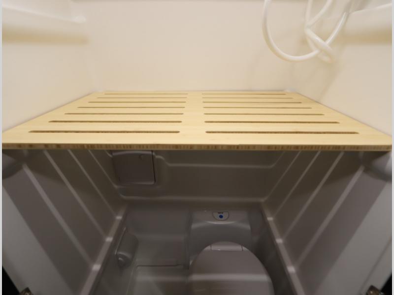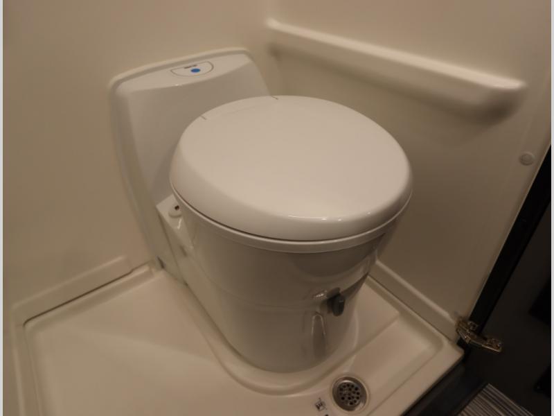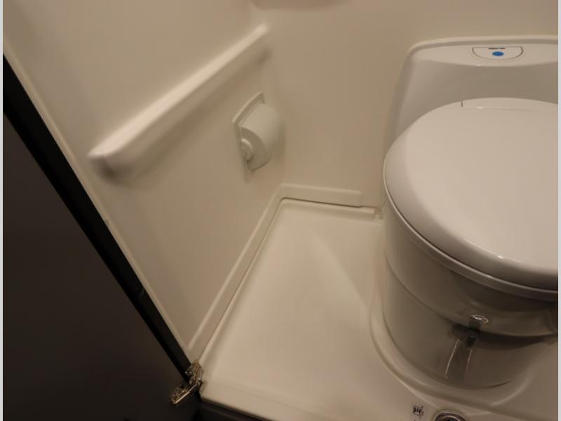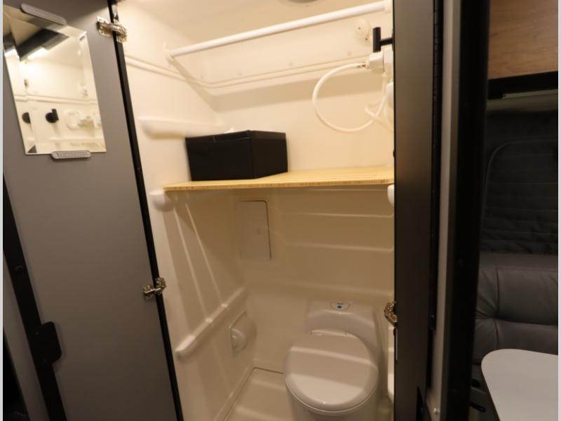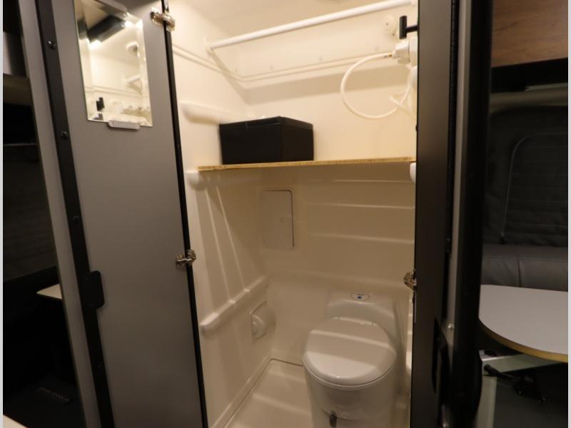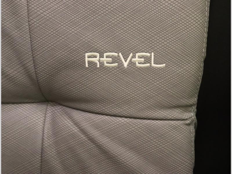 Inside, the Revel’s unique features start with a floorplan designed around a Power Lift Bed with gear garage below. This allows for a 49 x 79 inch cross coach sleeping area. A full galley, including a larger refrigerator, makes meal prep a breeze, while the all in one bath and gear closet boasts a cassette style toilet that eliminates the need for a separate black water holding tank.