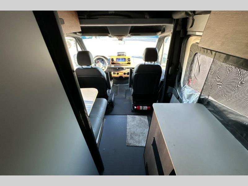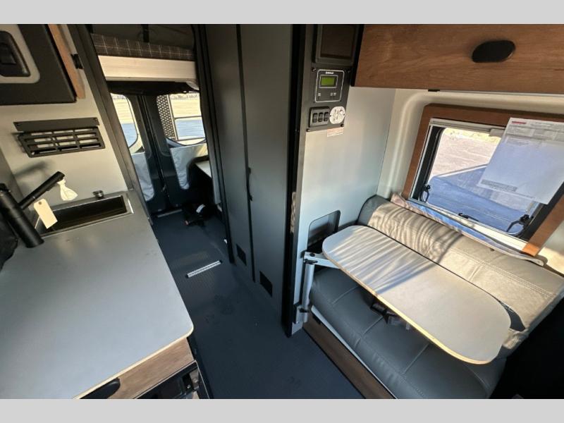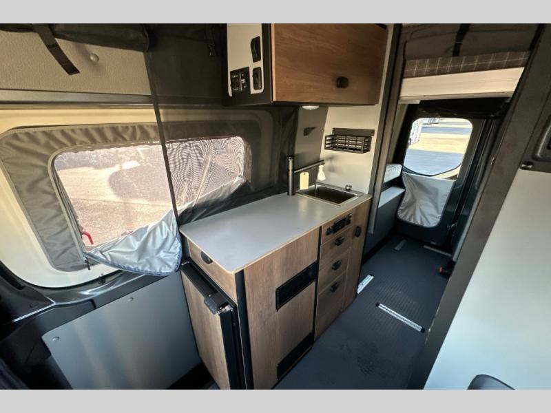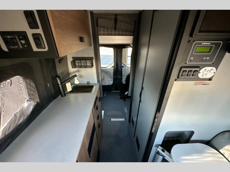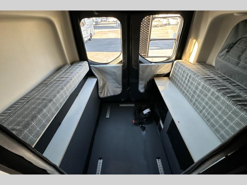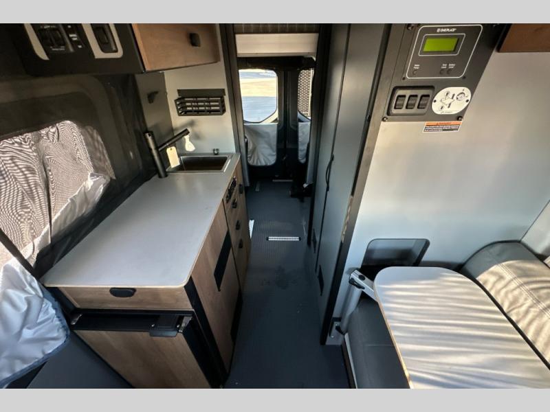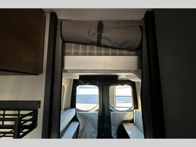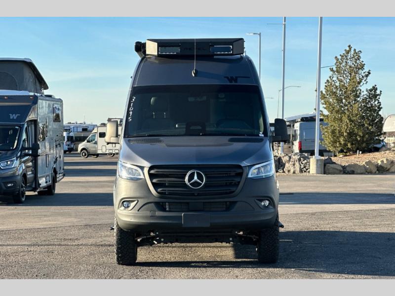 The Revel Class B diesel motorhome allows you to venture off-road thanks to the AWD Sprinter chassis with 2.0L high-output turbo-diesel 4-cylinder under the hood. The Winnebago Power MAX system (8.4kWh Lithionics lithium-ion battery with dual alternator charging capability) and Power Hub Pro which is an exclusive 5-in1 system that delivers off-grid power like nothing before allowing you to stay off-grid for up to 7 days. The interior provides a comfortable and relaxing space featuring modern decor including an updated galley with compression-latch cabinets, a new wall-mounted table, an innovative wet bath, plus a power lift bed with WinnSleep® mattress technology, and the gear garage below the bed features L-track bases for secure and flexible storage, plus cabinet storage and more.
