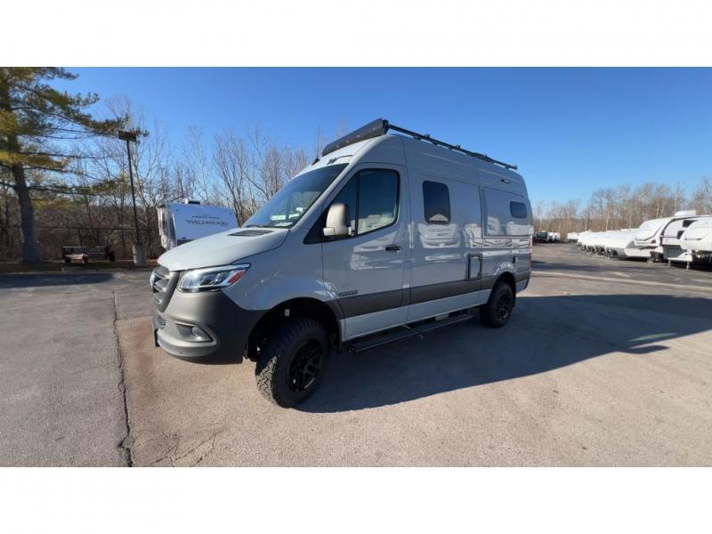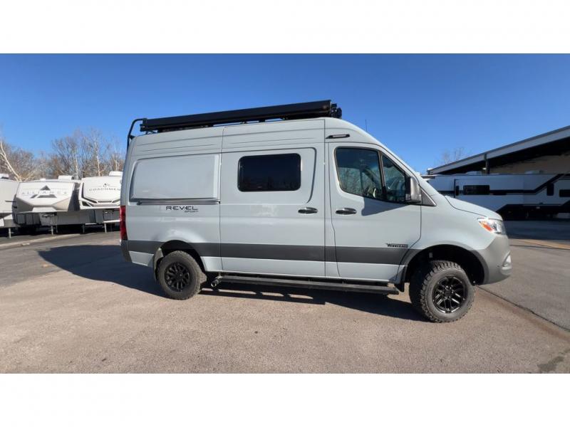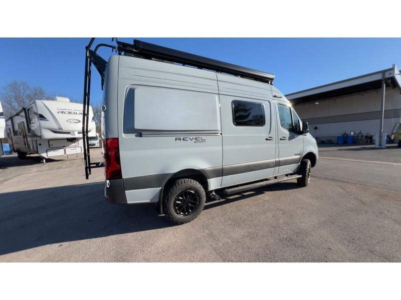 Go off-grid and off the beaten path with the Revel Sport Class B diesel motorhome by Winnebago. There is a 5kWh EcoFlow battery, 210-watts of solar power, plus a 5-in-1 Winnebago x EcoFlow Power Hub Pro with a 3,600-watt inverter, solar charger and more features to keep you powered up! This camper van sits on the durable Mercedes-Benz AWD sprinter chassis with a 2.0L high-output turbo-diesel engine. You will also find a MBUX touchscreen multimedia infotainment system, heated cab seats, plus added safety features, such as active braking assist and blind spot assist. The interior of the Revel Sport is outfitted with heavy duty vinyl flooring throughout to withstand your adventurous lifestyle, and there are RAM Tough-Track mounts throughout to keep your gear secure. Additional features include a hydronic heating system, aluminum running boards with ground effect lighting, a 5,000 lb. trailer hitch, and so much more!