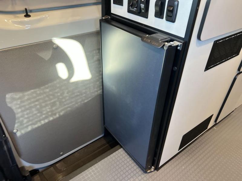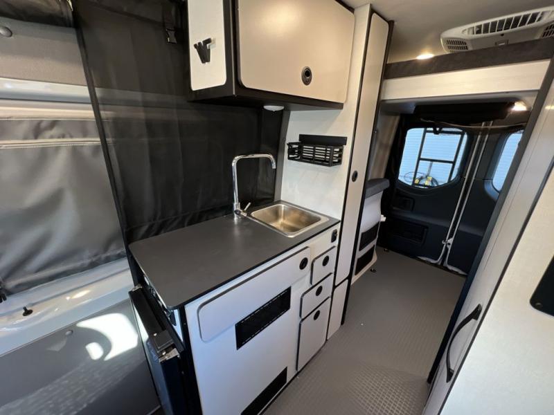Adventure is just around the corner with this camper van! Once you arrive at your destination, you can make a quick lunch on the single induction cooktop that is stored in a drawer so you can have more counter space when you need it, plus there is a pantry for snacks. There are also swivel cab seats and a side-facing lounge seat with an adjustable and removable table where you can relax and dine together. An all-in-one gear closet and wet bath will let you freshen up when you return, and the power lift bed with a gear garage below will provide a great night's rest. And if you're needing additional sleeping space, just choose the optional front cab air mattress!