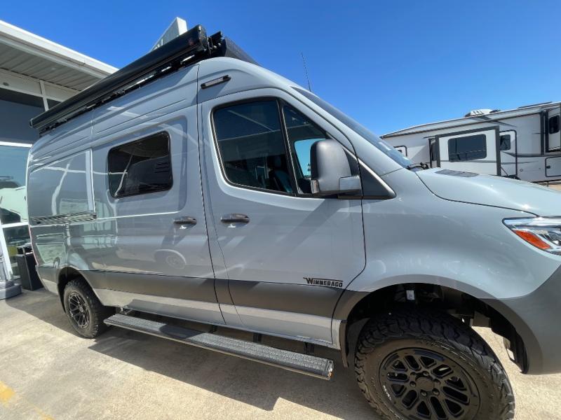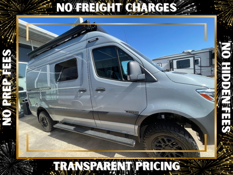 Go off-grid and off the beaten path with the Revel Sport Class B diesel motorhome by Winnebago. There is a 5kWh EcoFlow battery, 210-watts of solar power, plus a 5-in-1 Winnebago x EcoFlow Power Hub Pro with a 3,600-watt inverter, solar charger and more features to keep you powered up! This camper van sits on the durable Mercedes-Benz AWD sprinter chassis with a 2.0L high-output turbo-diesel engine. You will also find a MBUX touchscreen multimedia infotainment system, heated cab seats, plus added safety features, such as active braking assist and blind spot assist. The interior of the Revel Sport is outfitted with heavy duty vinyl flooring throughout to withstand your adventrous lifestyle, and there are RAM Tough-Track mounts throughout to keep your gear secure. Additional features include a hydronic heating system, aluminum running boards with ground effect lighting, a 5,000 lb. trailer hitch, and so much more!