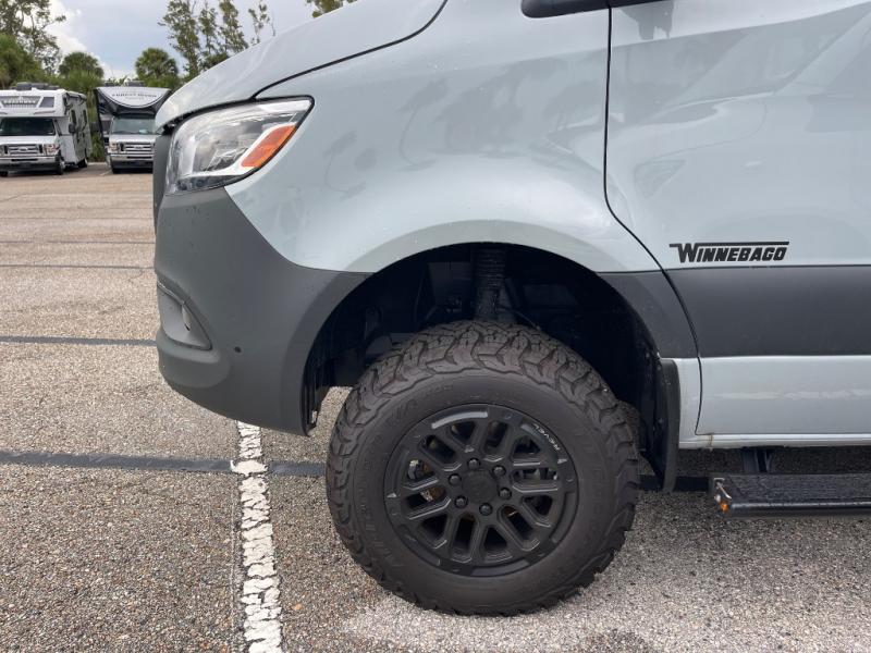 Go off-grid and off the beaten path with the Revel Sport Class B diesel motorhome by Winnebago. There is a 5kWh EcoFlow battery, 210-watts of solar power, plus a 5-in-1 Winnebago x EcoFlow Power Hub Pro with a 3,600-watt inverter, solar charger and more features to keep you powered up! This camper van sits on the durable Mercedes-Benz AWD sprinter chassis with a 2.0L high-output turbo-diesel engine. You will also find a MBUX touchscreen multimedia infotainment system, heated cab seats, plus added safety features, such as active braking assist and blind spot assist. The interior of the Revel Sport is outfitted with heavy duty vinyl flooring throughout to withstand your adventrous lifestyle, and there are RAM Tough-Track mounts throughout to keep your gear secure. Additional features include a hydronic heating system, aluminum running boards with ground effect lighting, a 5,000 lb. trailer hitch, and so much more!