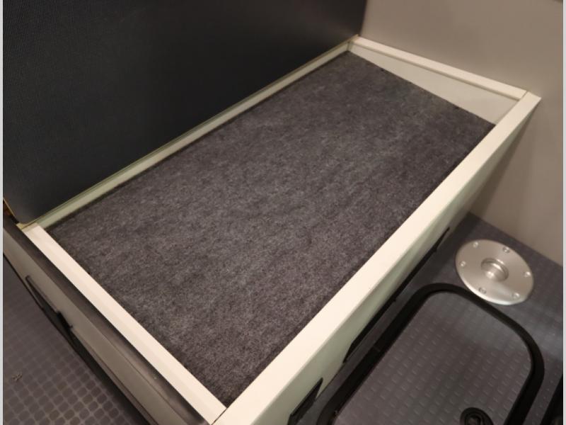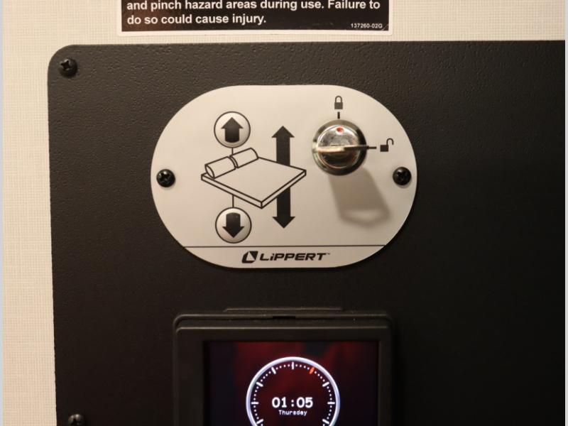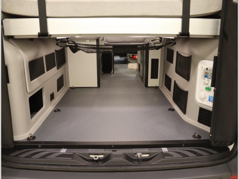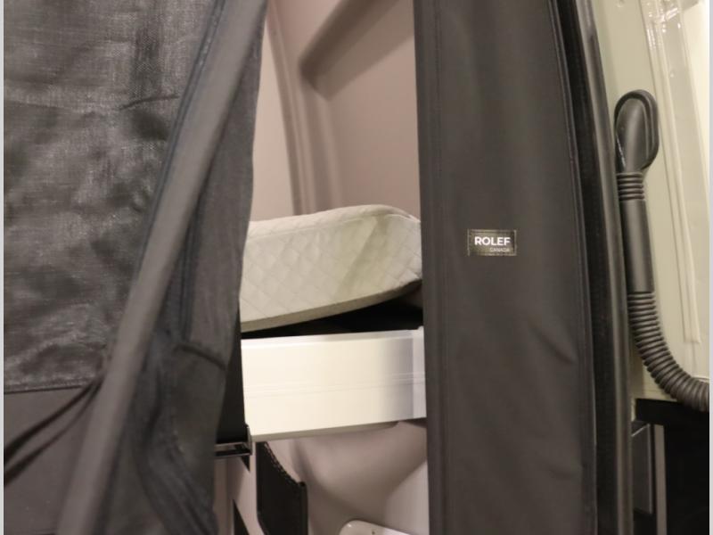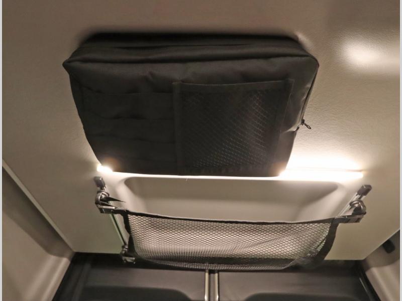 11. Gear Garage maintains the powered drop down bed, and now includes LED lighting under the bed when stored, along with additional storage bags mounted and recessed for even more underbed, ceiling mounted storage solutions