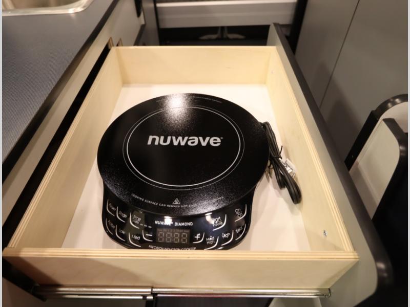 6. Induction cooktop has been made portable, to be used outside the van, and frees up even more countertop space