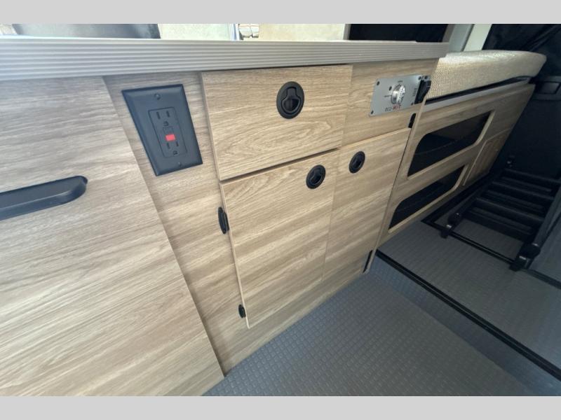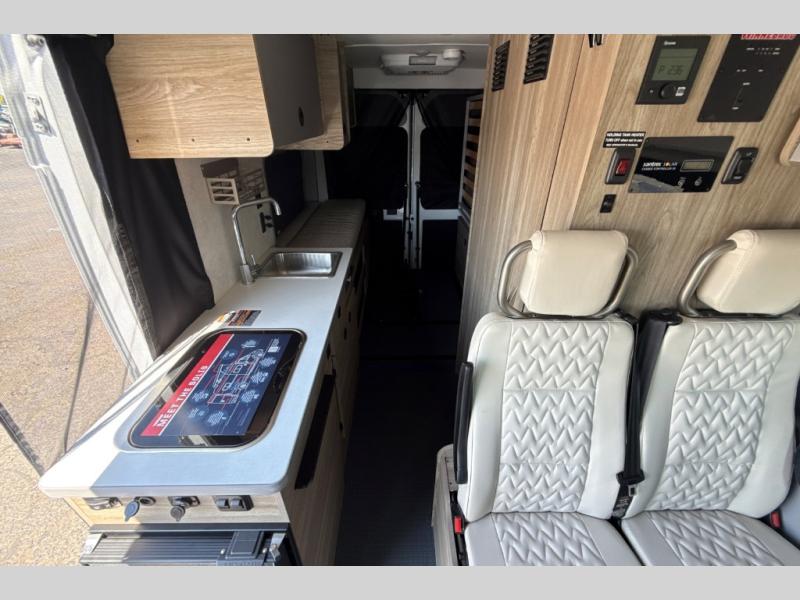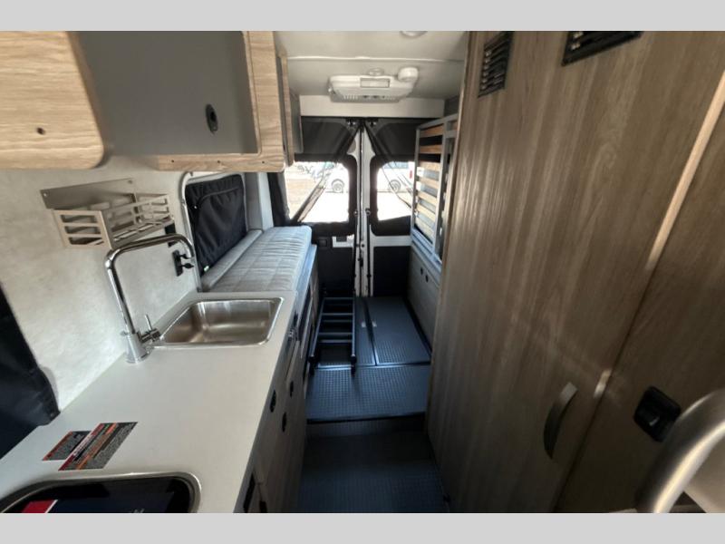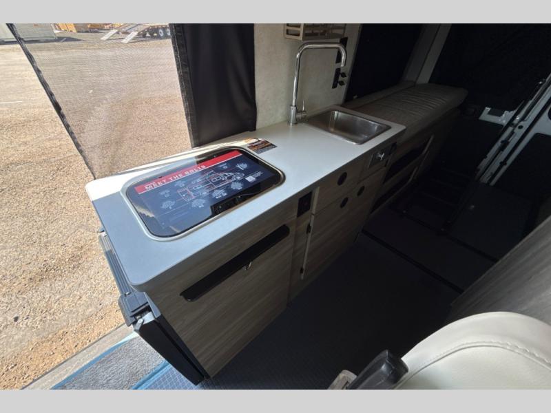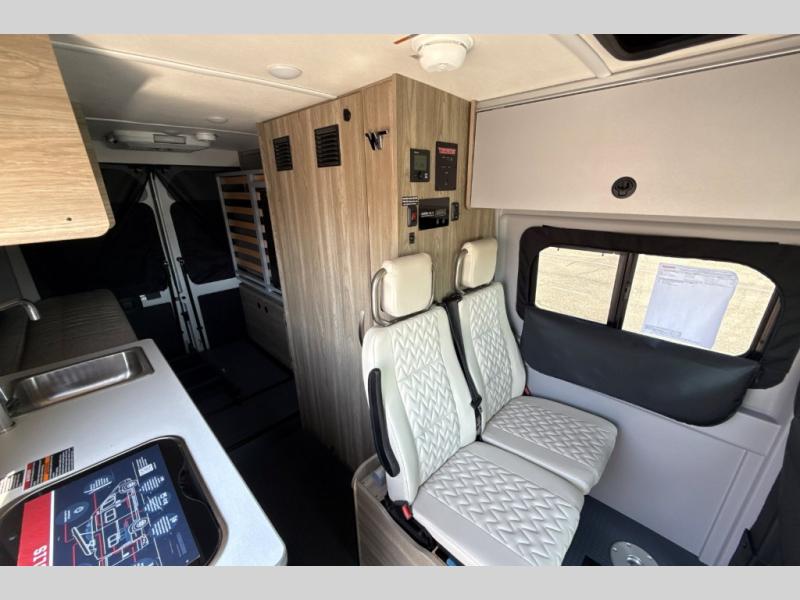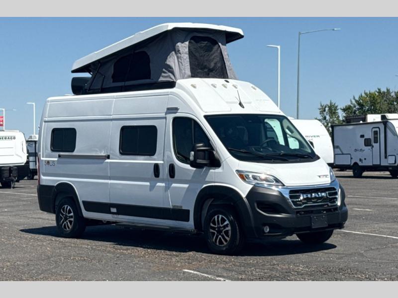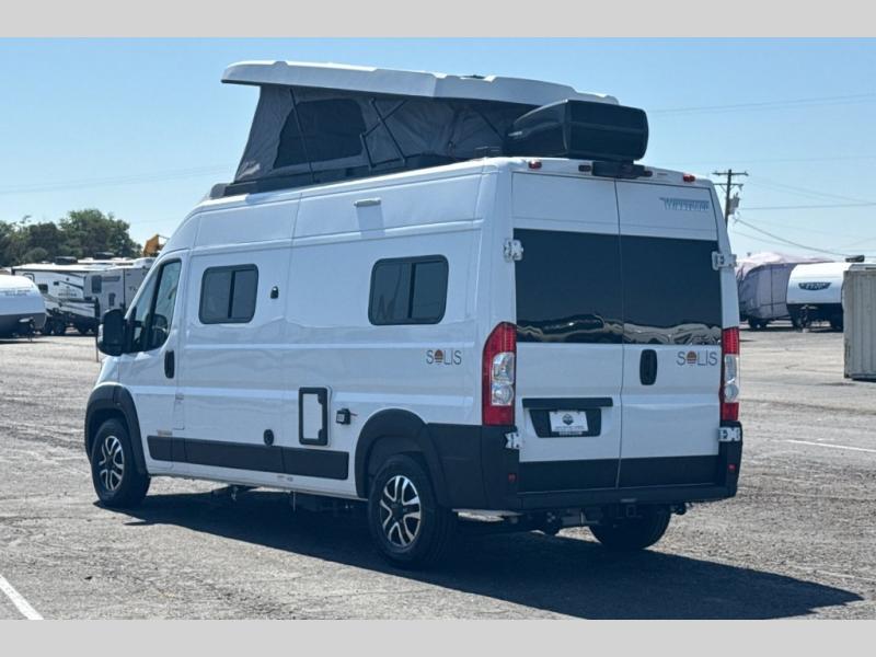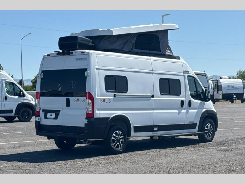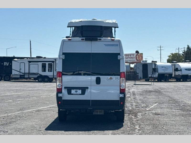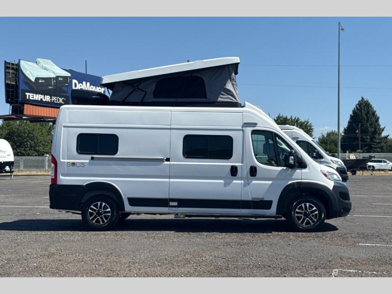 Each Solis Class B gas motorhome by Winnebago sits upon a fuel-efficient Ram ProMaster chassis with a 3.6L V6 engine to power your adventures. You will love the cab conveniences that make each trip enjoyable, like the radio/review monitor system touchscreen and the crosswind assist to keep you steady on the road. Some of the hassle-free amenities you will appreciate are the exterior wash station, the Eco-Hot water system, and the water center control panel located inside the right rear door. Head indoors to find heavy-duty vinyl flooring throughout, a laminate countertop and a stainless steel sink in the galley, plus tinted coach windows for added privacy. The Solis also features off-grid capabilities with its two deep-cycle Group 31 batteries and 220-watt flexible surface solar panel with a controller. Adventures awaits in the Solis Class B gas motorhome!