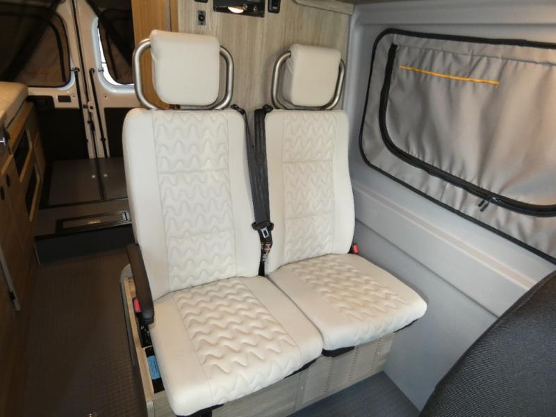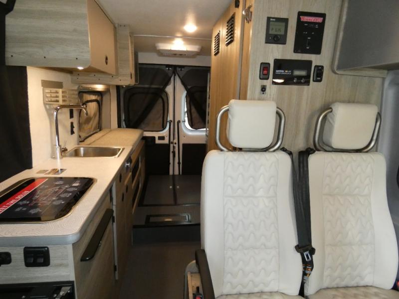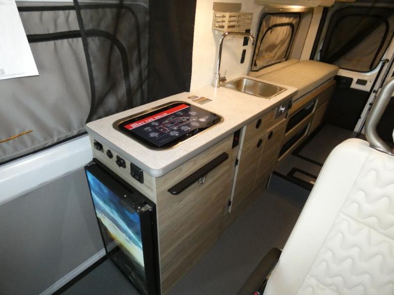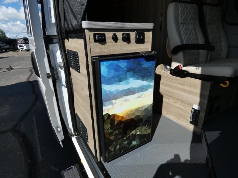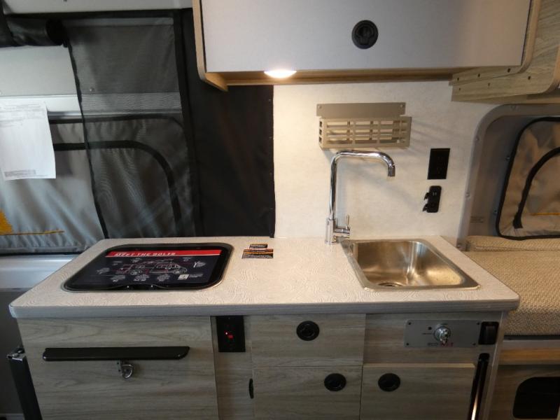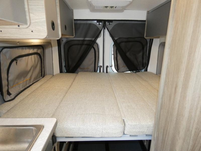 Enjoy a weekend ride in the mountains or make it an overnight stay with versatile sleeping options in this camper van. After you've freshened up in the convenient wet bath, prepare breakfast on the two burner range, and the milk and eggs can go back in the 3.0 cu. ft. single door refrigerator/freezer. This model also includes rear double doors with screens to let the breeze in and keep bugs out!