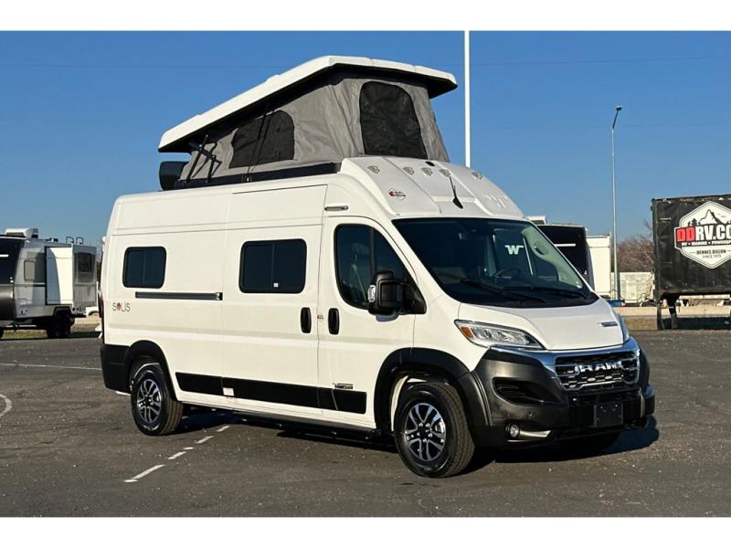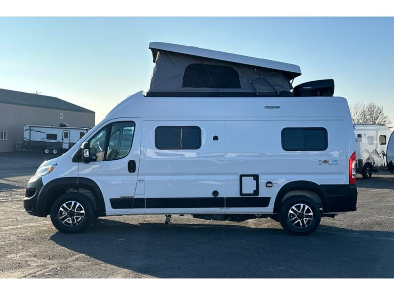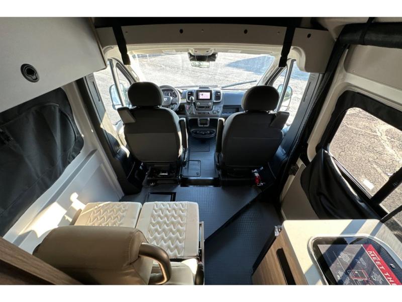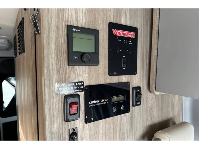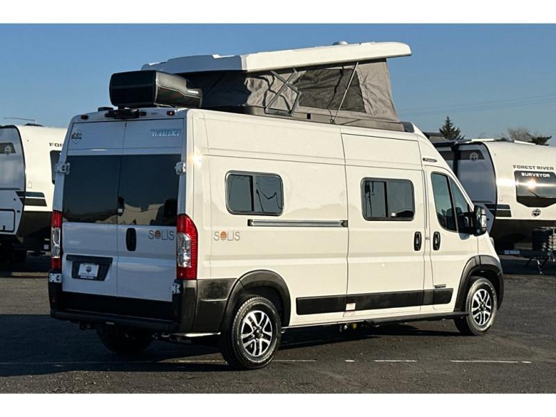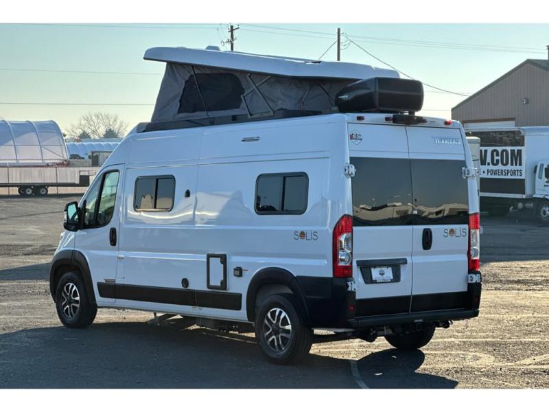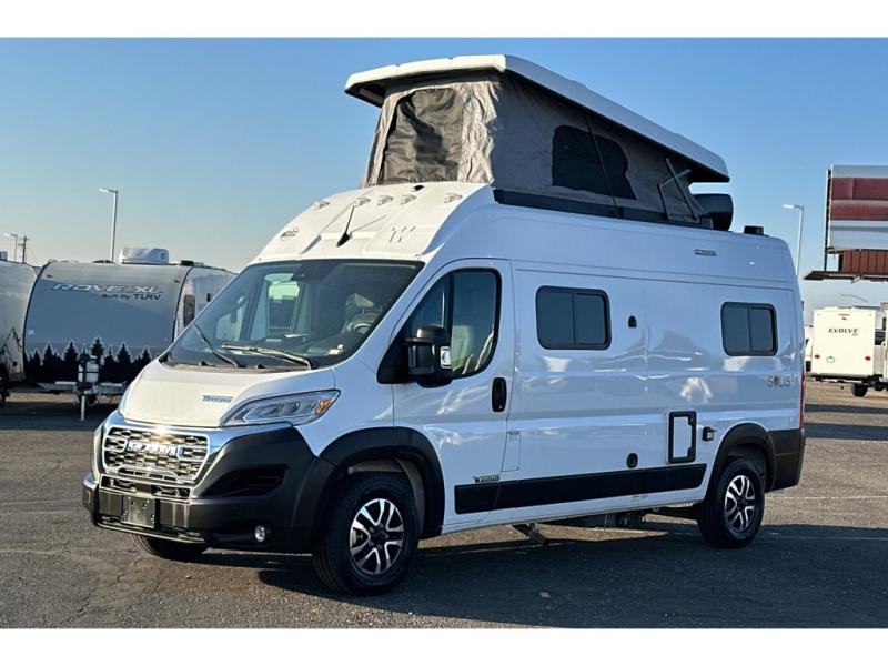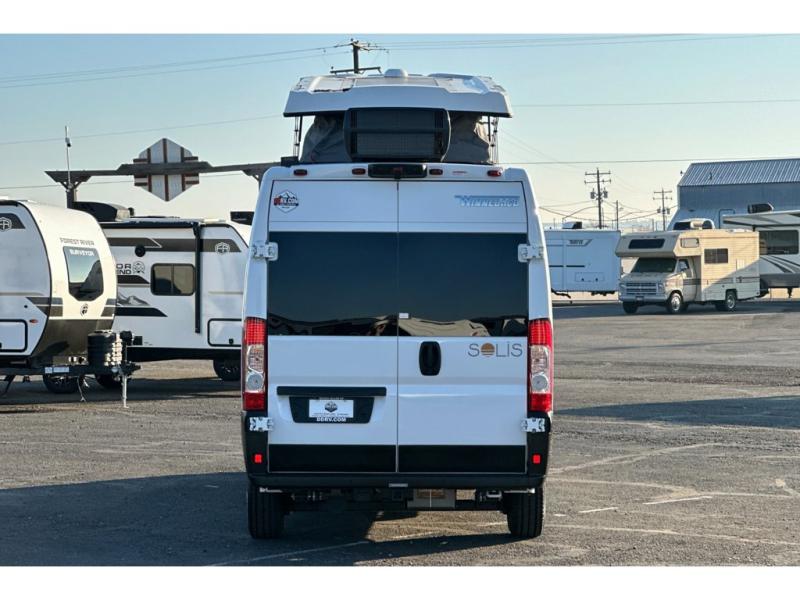 Each Solis Class B gas motorhome by Winnebago sits upon a fuel-efficient Ram ProMaster chassis with a 3.6L V6 engine to power your adventures. You will love the cab conveniences that make each trip enjoyable, like the radio/review monitor system touchscreen and the crosswind assist to keep you steady on the road. Some of the hassle-free amenities you will appreciate are the exterior wash station, the Eco-Hot water system, and the water center control panel located inside the right rear door. Head indoors to find heavy-duty vinyl flooring throughout, a laminate countertop and a stainless steel sink in the galley, plus tinted coach windows for added privacy. The Solis also features off-grid capabilities with its two deep-cycle Group 31 batteries and 220-watt flexible surface solar panel with a controller. Adventures awaits in the Solis Class B gas motorhome!