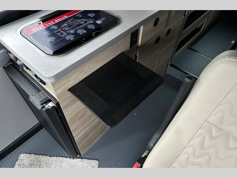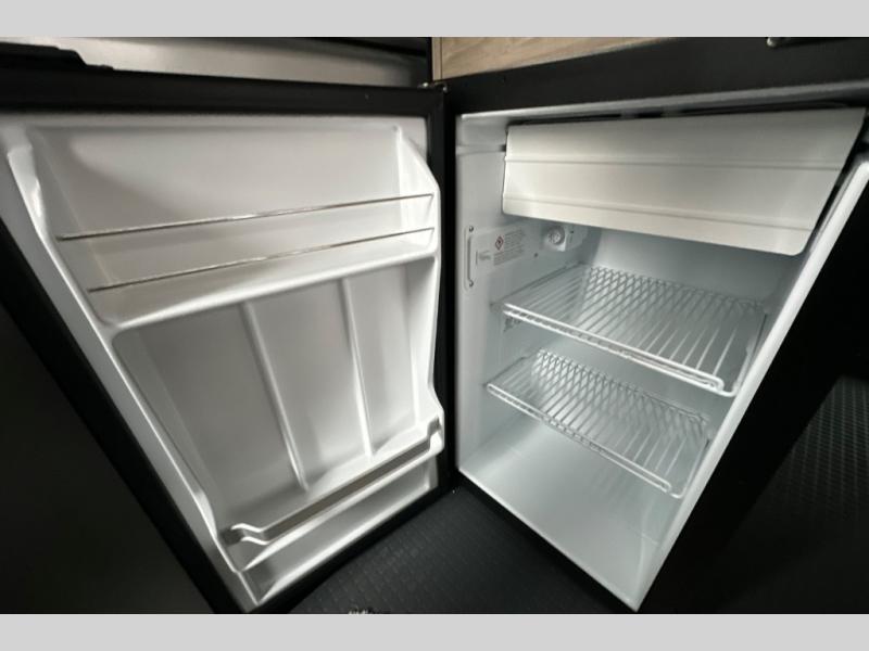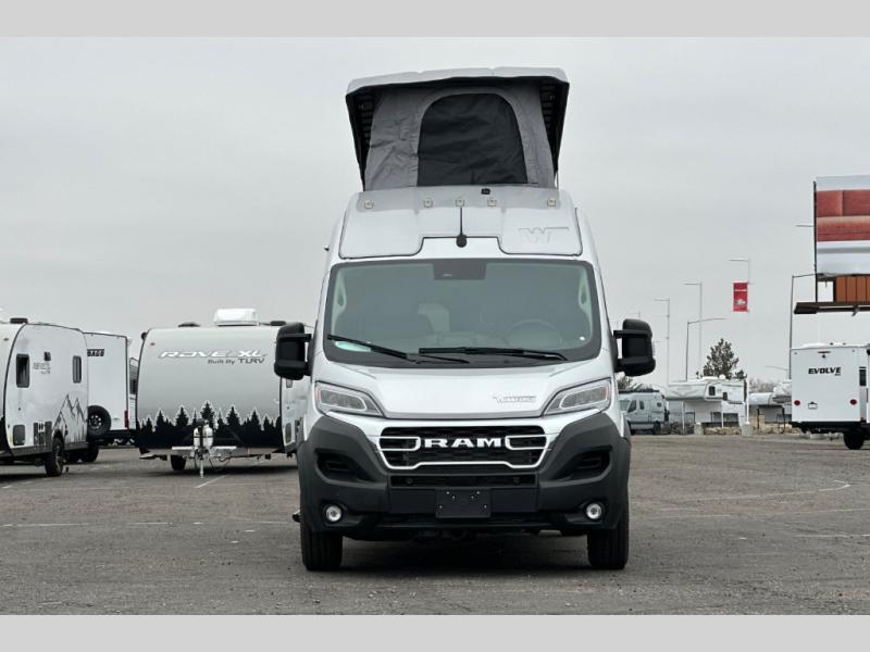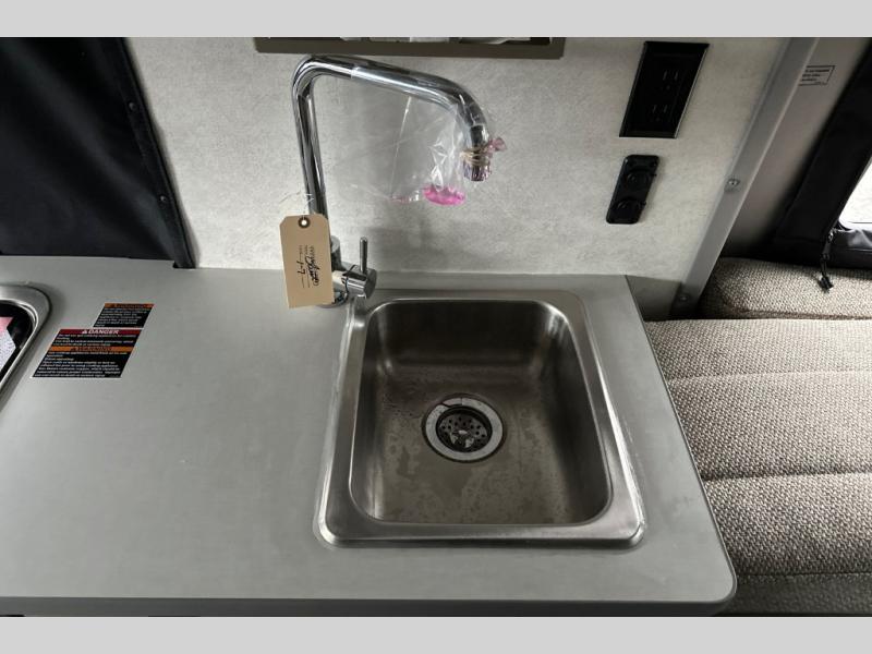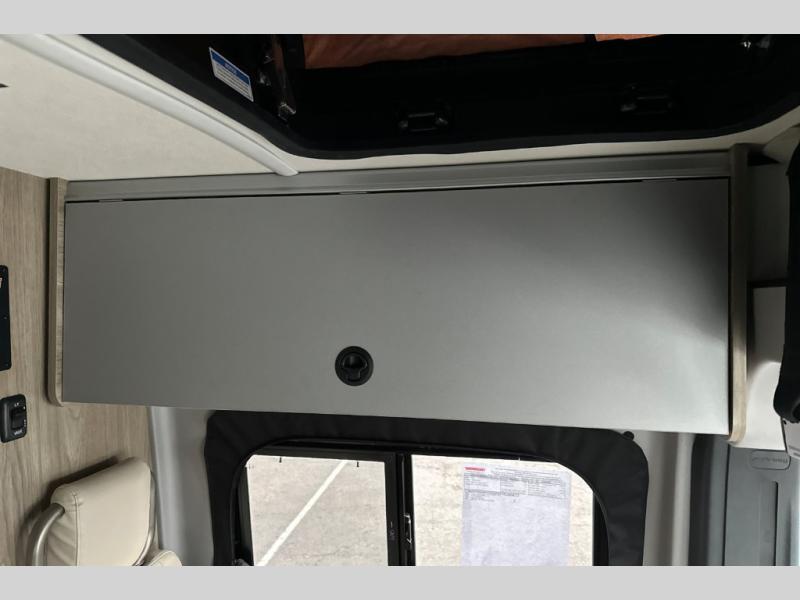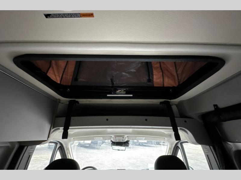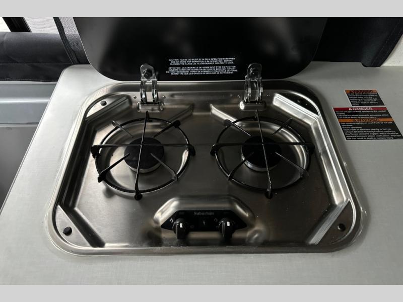 Enjoy a weekend ride in the mountains or make it an overnight stay with versatile sleeping options in this camper van. You'll find the Murphy+ bed in the back will provide a great night's rest, or you can choose the optional sofa/bed with added belted seating if you have more tag-alongs. And of course the little ones will love the pop-top sleeping area to climb into each night. After you've freshened up in the convenient wet bath, prepare breakfast on the two burner range, and the milk and eggs can go back in the 3.0 cu. ft. single door refrigerator/freezer. This model also includes rear double doors with screens to let the breeze in and keep bugs out!