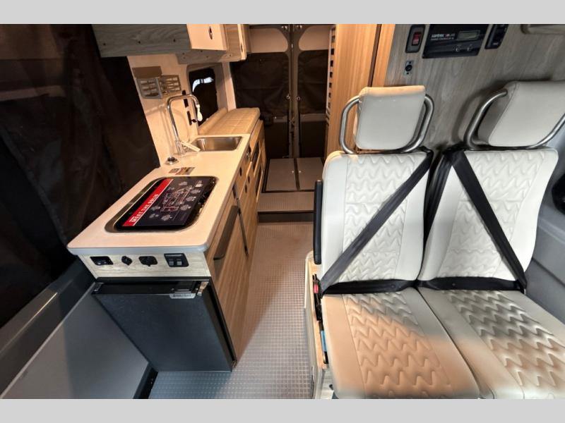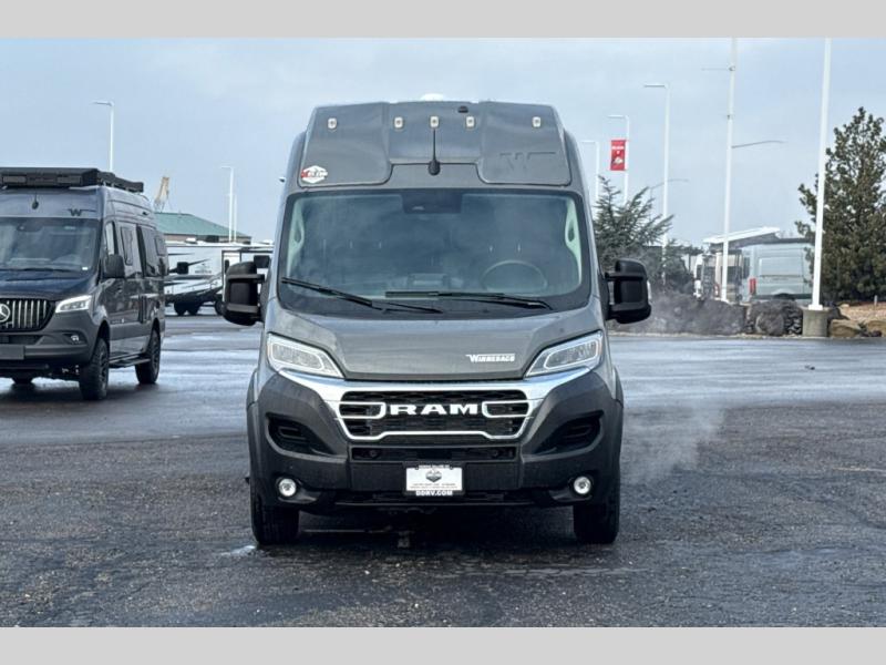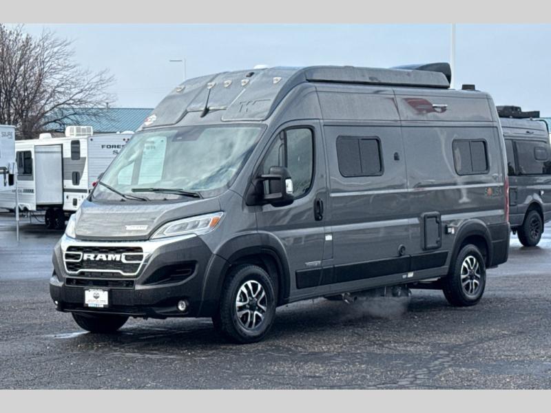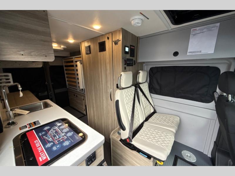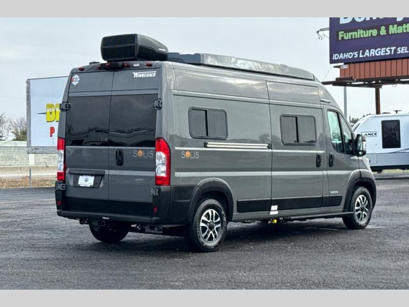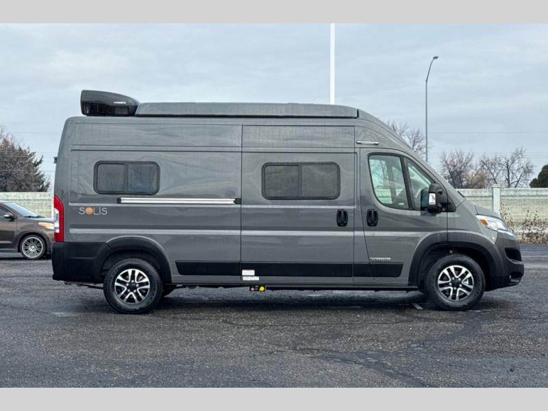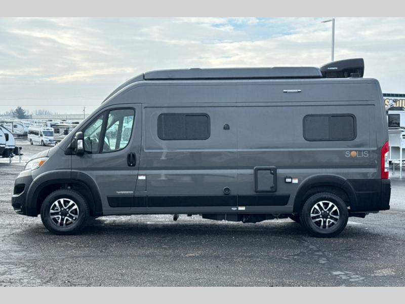 Each Solis Class B gas motorhome by Winnebago sits upon a fuel-efficient Ram ProMaster chassis with a 3.6L V6 engine to power your adventures. You will love the cab conveniences that make each trip enjoyable, like the radio/review monitor system touchscreen and the crosswind assist to keep you steady on the road. Some of the hassle-free amenities you will appreciate are the exterior wash station, the Eco-Hot water system, and the water center control panel located inside the right rear door. Head indoors to find heavy-duty vinyl flooring throughout, a laminate countertop and a stainless steel sink in the galley, plus tinted coach windows for added privacy. The Solis also features off-grid capabilities with its two deep-cycle Group 31 batteries and 220-watt flexible surface solar panel with a controller. Adventures awaits in the Solis Class B gas motorhome!