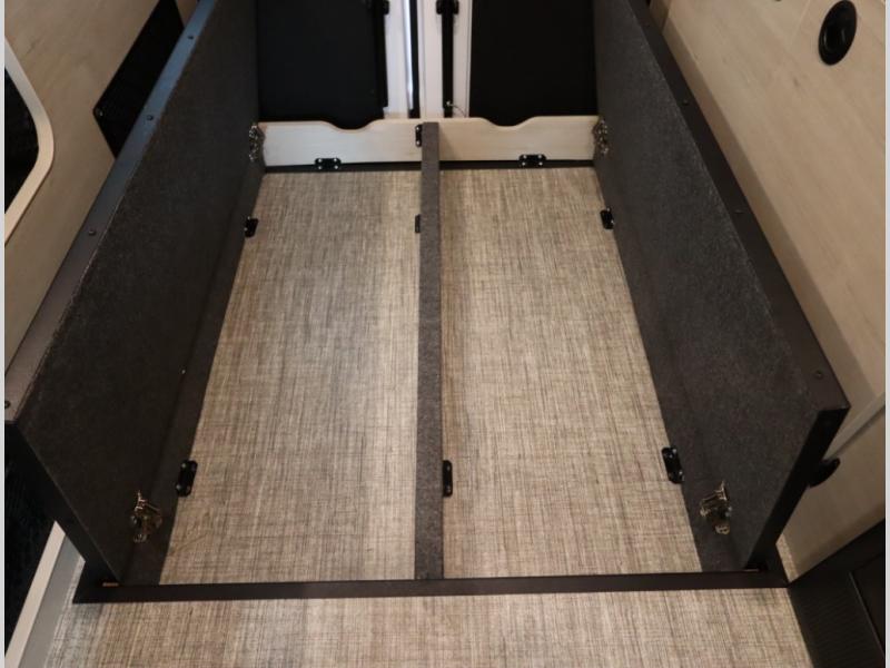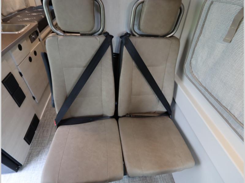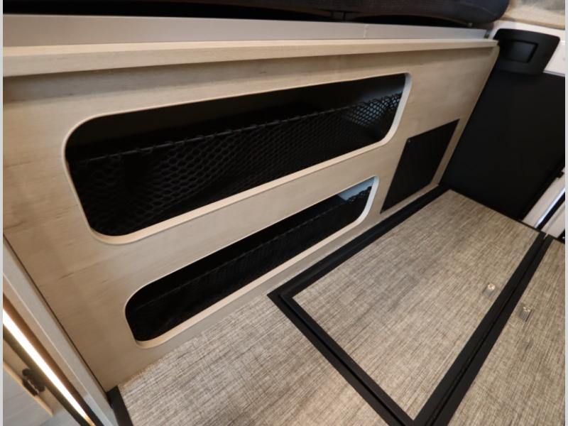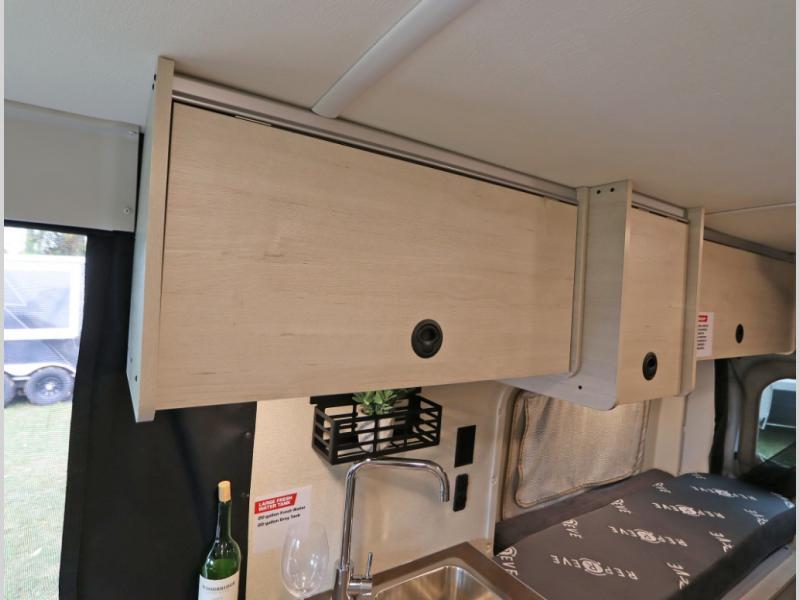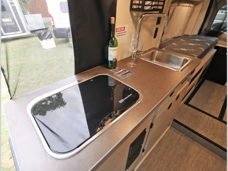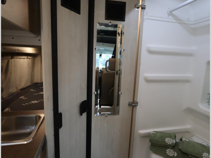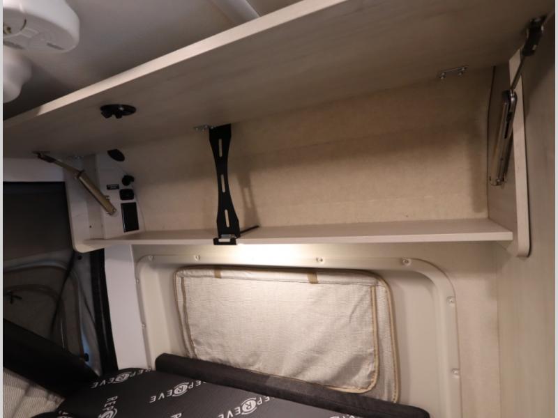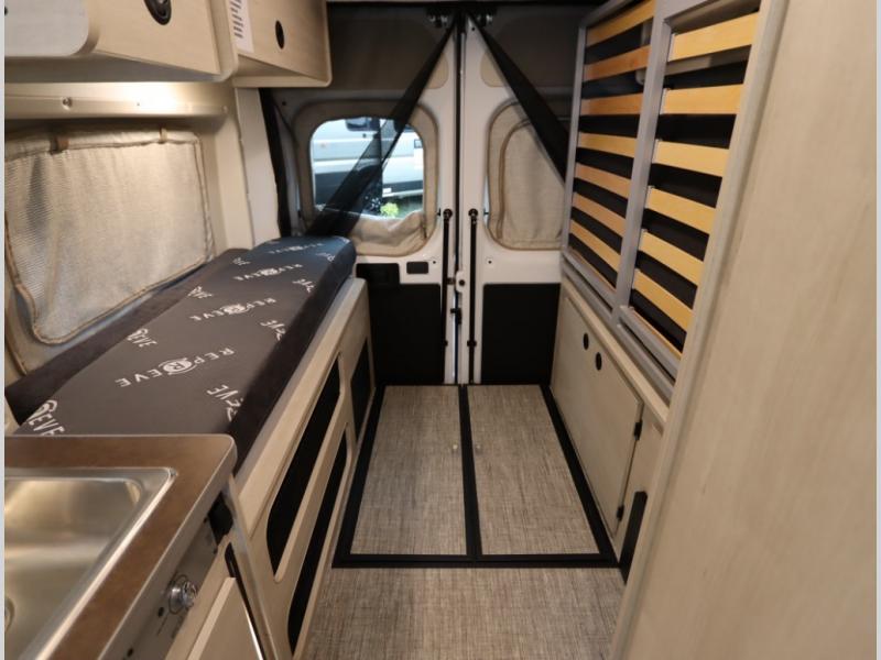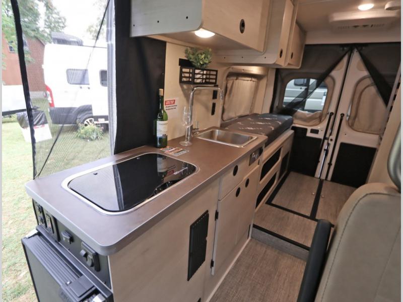 The popular Solis is available with or without the overhead pop top studio loft sleeping surface that includes the Froli deluxe sleep system! Plus you can increase sleeping now with the Luno front cab air mattress for a 30 x 65 in additional sleeping surface. Towards the rear of the van, the standard cross coach sleeping Murphy Bed is available or can be replaced with a sofa bed as well!