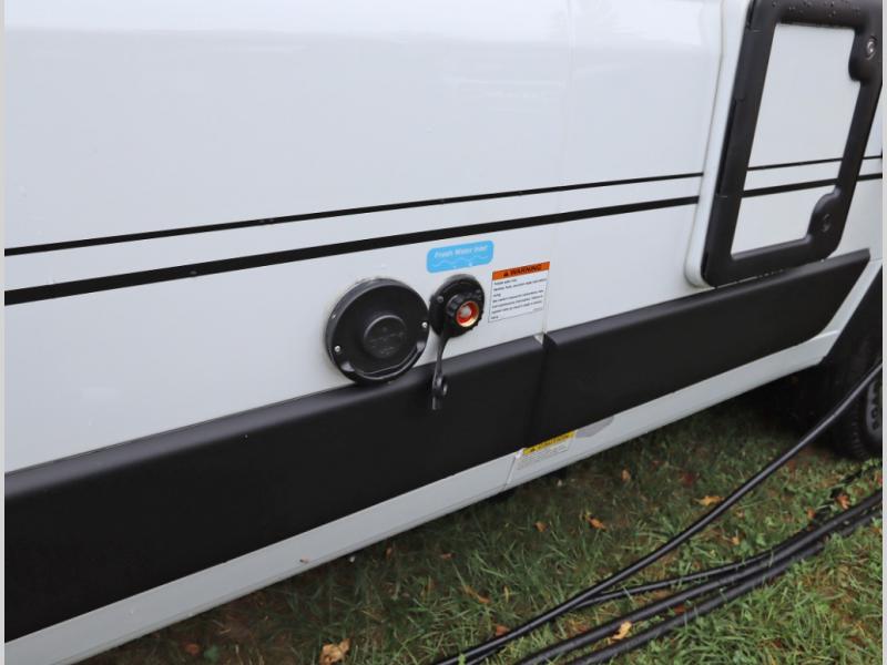 10. An exterior water fill is provided, removing the need to have the rear van doors open or pinching an existing hose, yet can be valved off in cold weather use