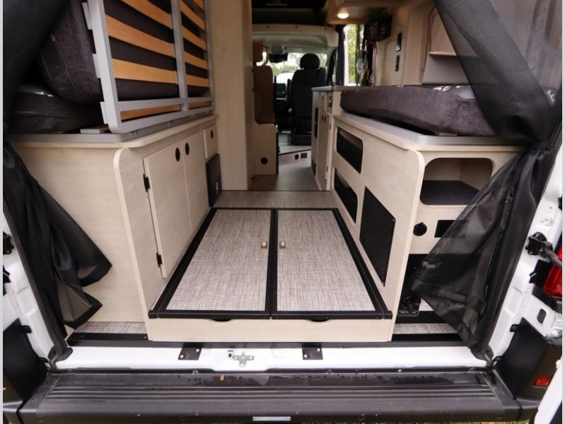 Built on the fuel efficient, and now safety enhanced Ram ProMaster chassis, the Solis features all season insulation and plumbing, a space extending rear annex and Truma Combi Eco hydronic heating and on demand hot water with hot water loop purge. In addition to the sleeping below, the fiberglass studio loft pop top easily expands your sleeping space, offers panoramic views and provides a restful night's sleep with the innovative FROLI sleep system.