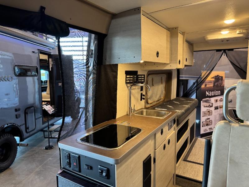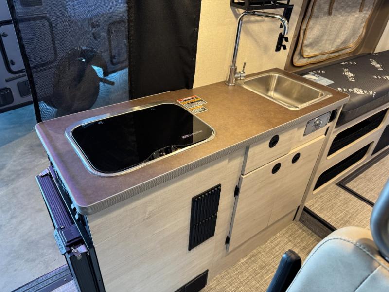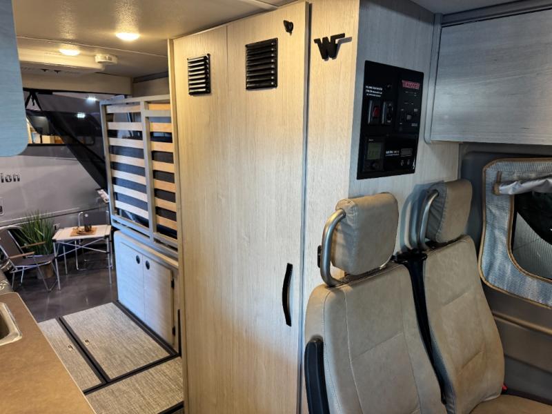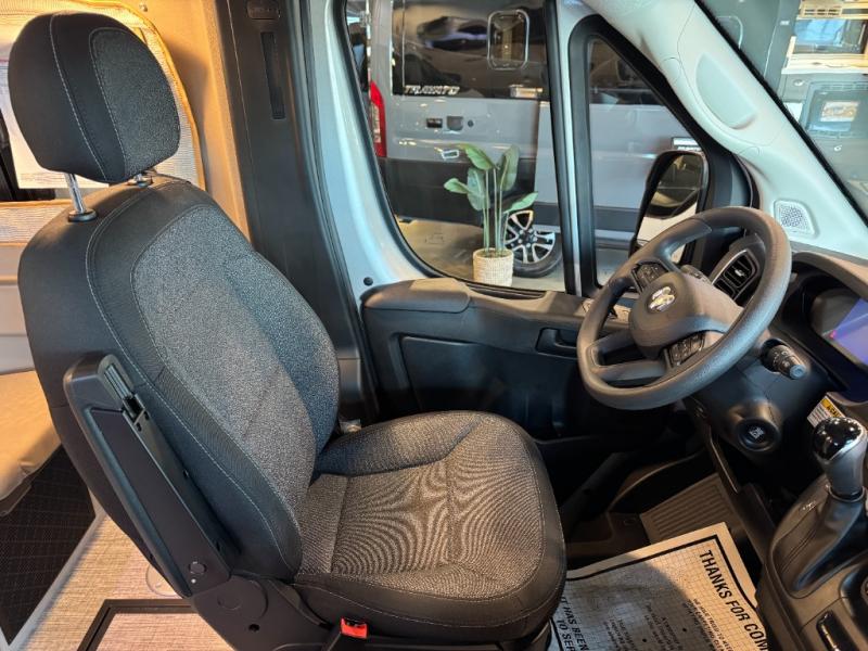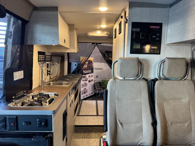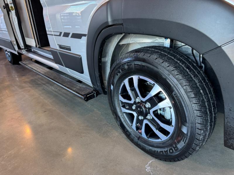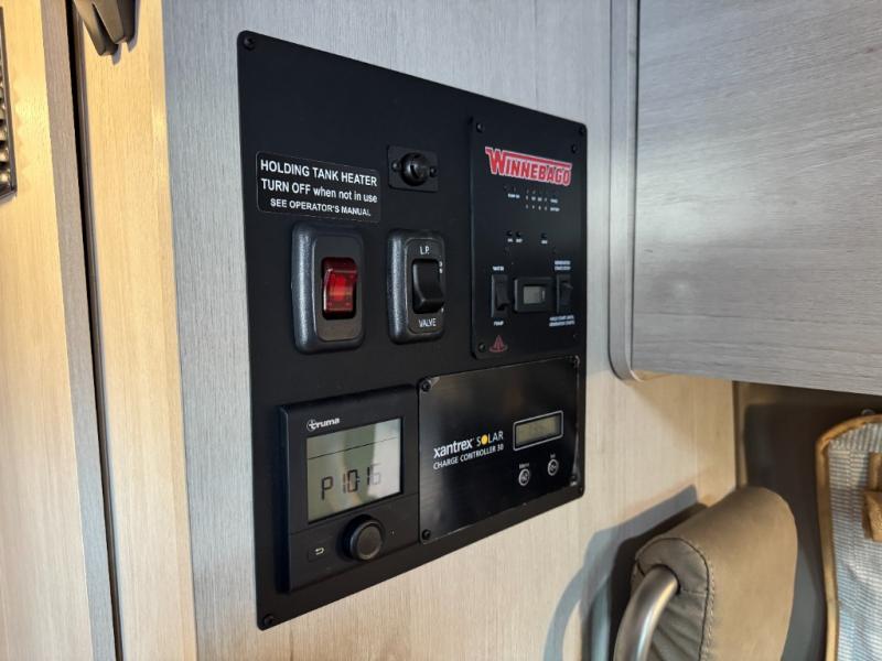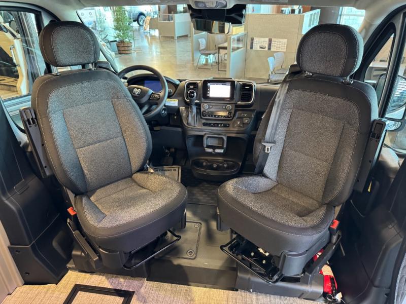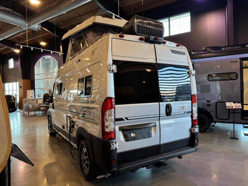 Each Solis Class B gas motorhome by Winnebago sits upon a fuel-efficient Ram ProMaster chassis with a 3.6L V6 engine to power your adventures. You will love the cab conveniences that make each trip enjoyable, like the radio/review monitor system touchscreen and the crosswind assist to keep you steady on the road. Some of the hassle-free amenities you will appreciate are the exterior wash station, the Eco-Hot water system, and the water center control panel located inside the right rear door. Head indoors to find heavy-duty vinyl flooring throughout, a laminate countertop and a stainless steel sink in the galley, plus tinted coach windows for added privacy. The Solis also features off-grid capabilities with its two deep-cycle Group 31 batteries and 220-watt flexible surface solar panel with a controller. Adventures awaits in the Solis Class B gas motorhome!