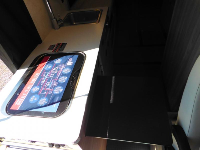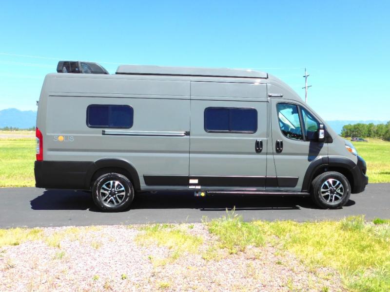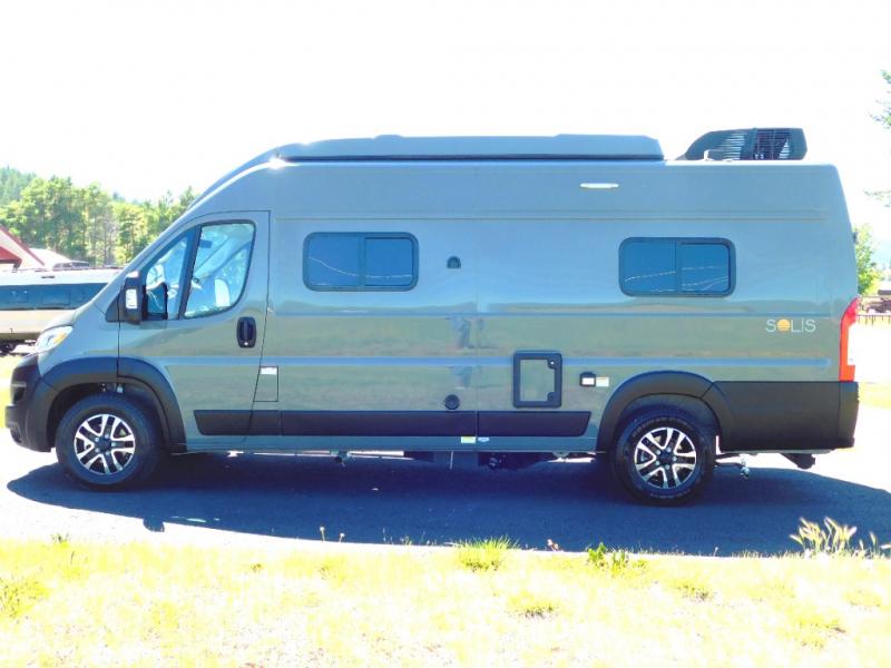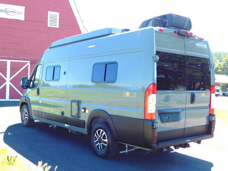 Each Solis Class B gas motorhome by Winnebago sits upon a fuel-efficient Ram ProMaster chassis with a 3.6L V6 engine to power your adventures. You will love the cab conveniences that make each trip enjoyable, like the radio/review monitor system touchscreen and the crosswind assist to keep you steady on the road. Some of the hassle-free amenities you will appreciate are the exterior wash station, the Eco-Hot water system, and the water center control panel located inside the right rear door. Head indoors to find heavy-duty vinyl flooring throughout, a laminate countertop and a stainless steel sink in the galley, plus tinted coach windows for added privacy. The Solis also features off-grid capabilities with its two deep-cycle Group 31 batteries and 220-watt flexible surface solar panel with a controller. Adventures awaits in the Solis Class B gas motorhome!