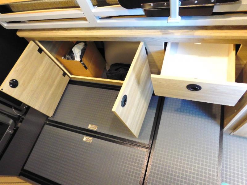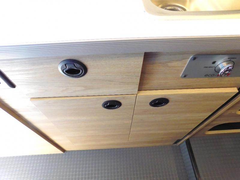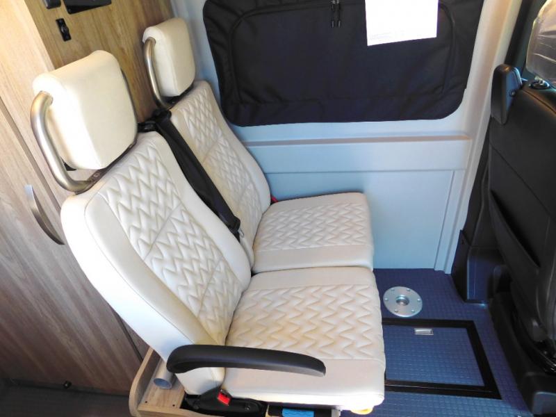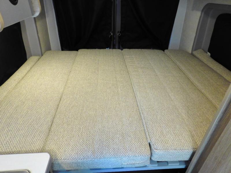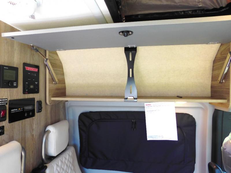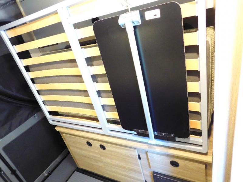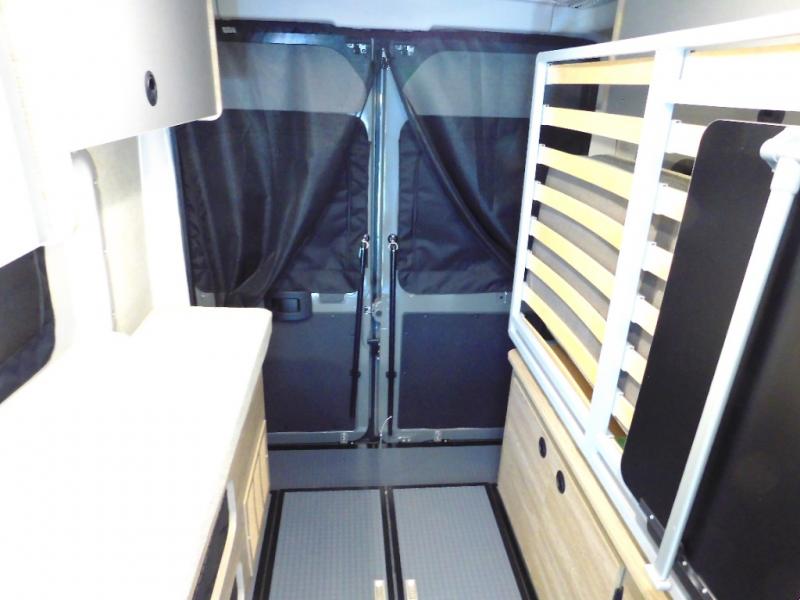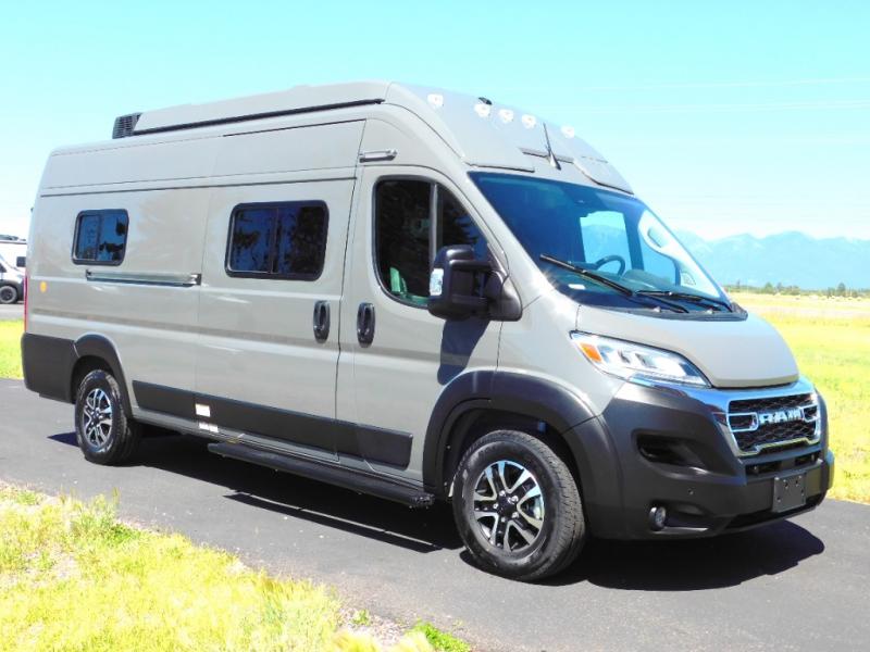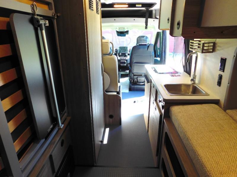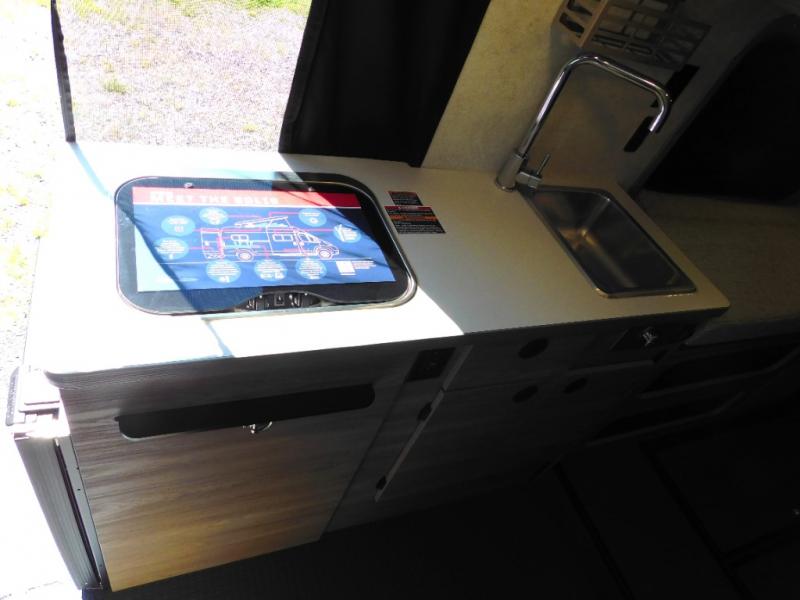 This camper van with an L-track storage system is perfect for those needing more storage space for their hiking and biking gear. You can stay powered up with the 2,800-watt gas generator, and there is a 13,500 BTU air conditioner with directional ducts and dial control that will allow you to come inside to cool off after a trail ride. A Murphy+ bed comes standard, and any guests that tag along can sleep in the pop-top sleeping area! If you choose to remove the pop-top, you'll enjoy the deluxe powered ventilator fan instead. You'll find the wet bath to come in handy when you want to clean up, and the dinette seating with a removable pedestal table will provide a place to enjoy your dinner at.