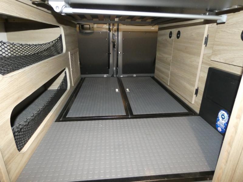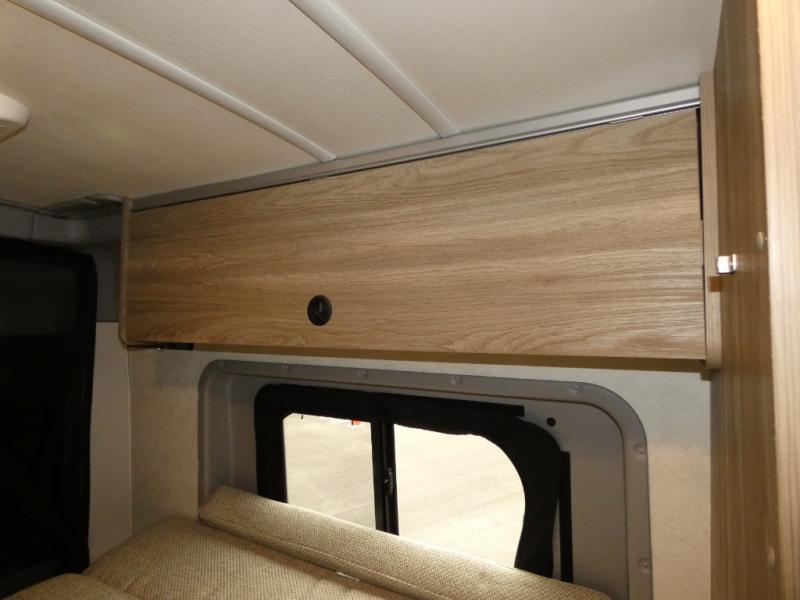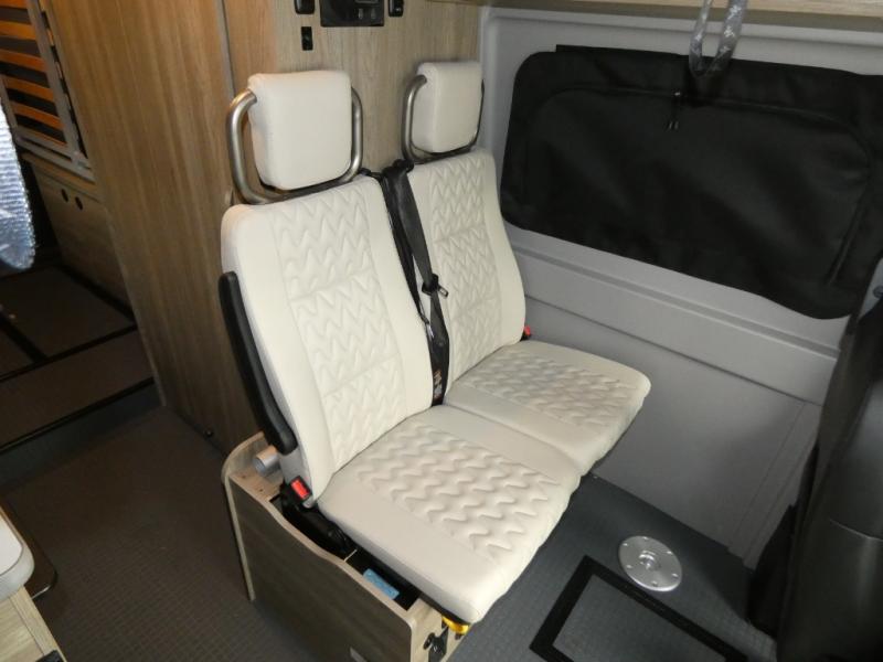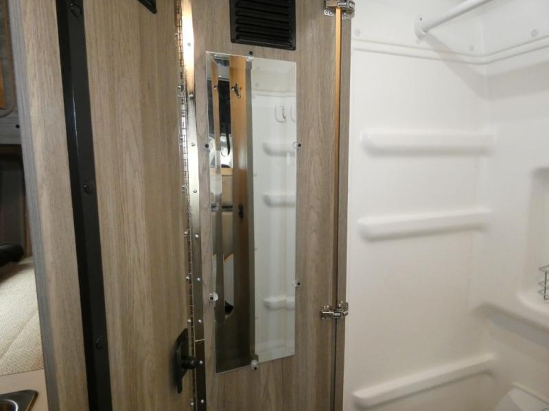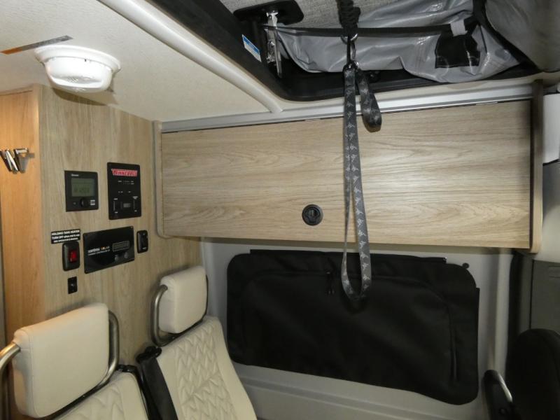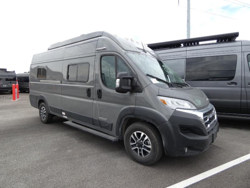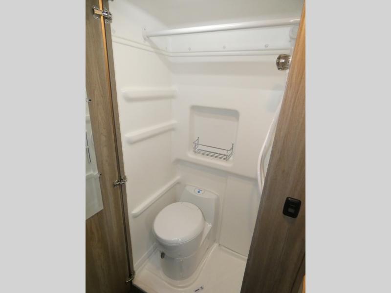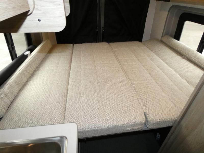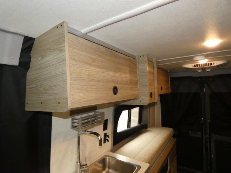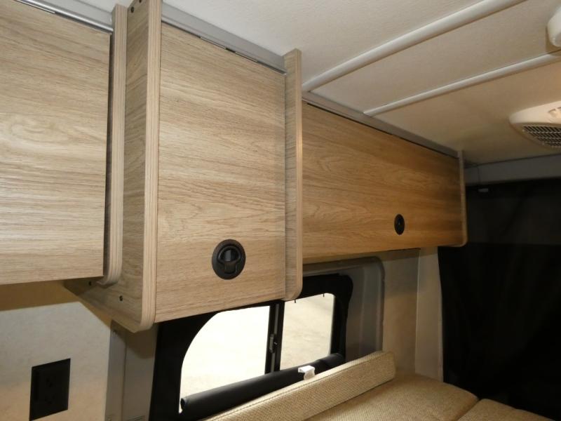 This camper van with an L-track storage system is perfect for those needing more storage space for their hiking and biking gear. You can stay powered up with the 2,800-watt gas generator, and there is a 13,500 BTU air conditioner with directional ducts and dial control that will allow you to come inside to cool off after a trail ride. A Murphy+ bed comes standard, and any guests that tag along can sleep in the pop-top sleeping area! If you choose to remove the pop-top, you'll enjoy the deluxe powered ventilator fan instead. You'll find the wet bath to come in handy when you want to clean up, and the dinette seating with a removable pedestal table will provide a place to enjoy your dinner at.