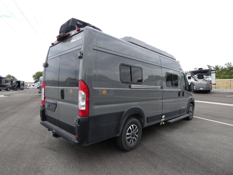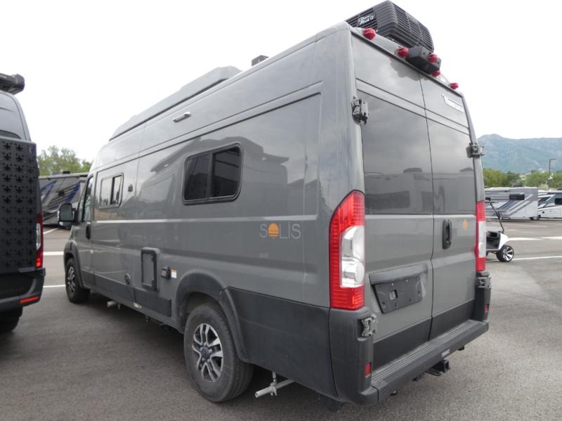 Each Solis Class B gas motorhome by Winnebago sits upon a fuel-efficient Ram ProMaster chassis with a 3.6L V6 engine to power your adventures. You will love the cab conveniences that make each trip enjoyable, like the radio/review monitor system touchscreen and the crosswind assist to keep you steady on the road. Some of the hassle-free amenities you will appreciate are the exterior wash station, the Eco-Hot water system, and the water center control panel located inside the right rear door. Head indoors to find heavy-duty vinyl flooring throughout, a laminate countertop and a stainless steel sink in the galley, plus tinted coach windows for added privacy. The Solis also features off-grid capabilities with its two deep-cycle Group 31 batteries and 220-watt flexible surface solar panel with a controller. Adventures awaits in the Solis Class B gas motorhome!