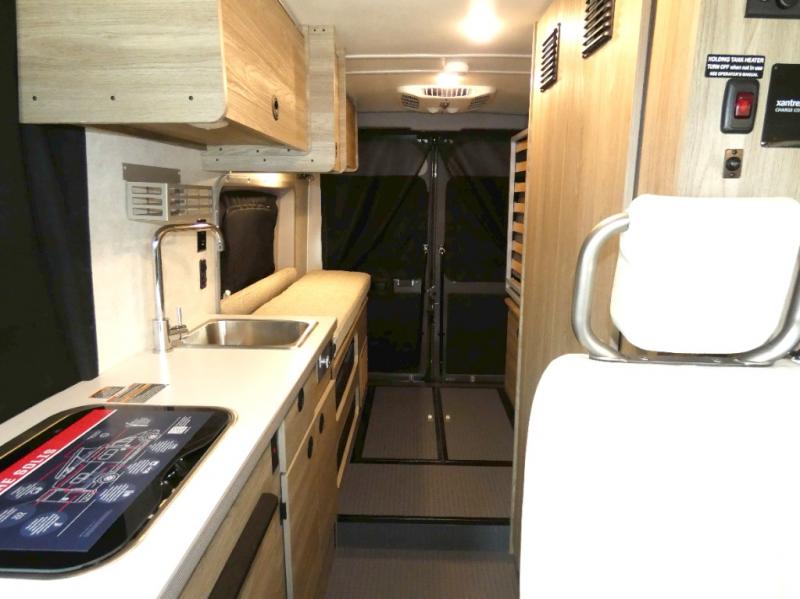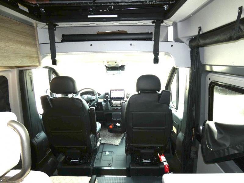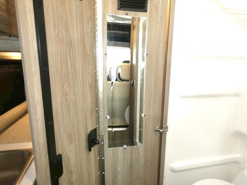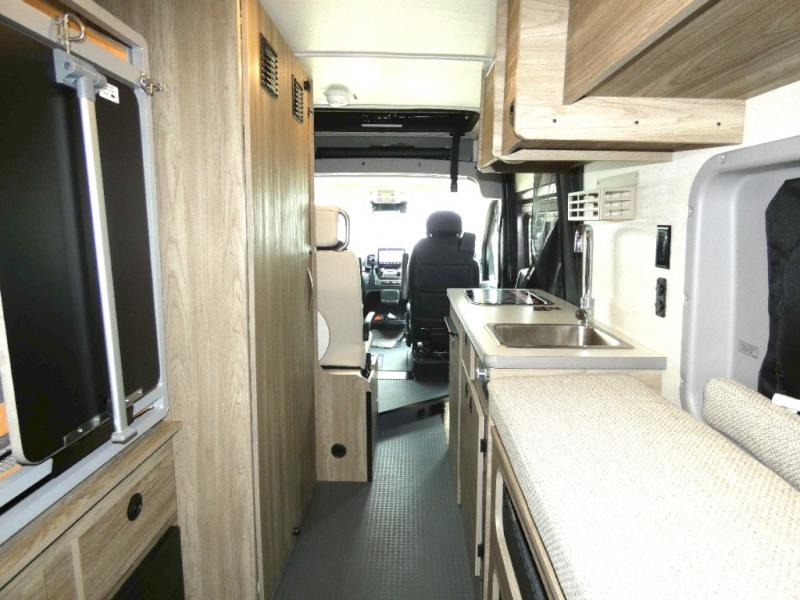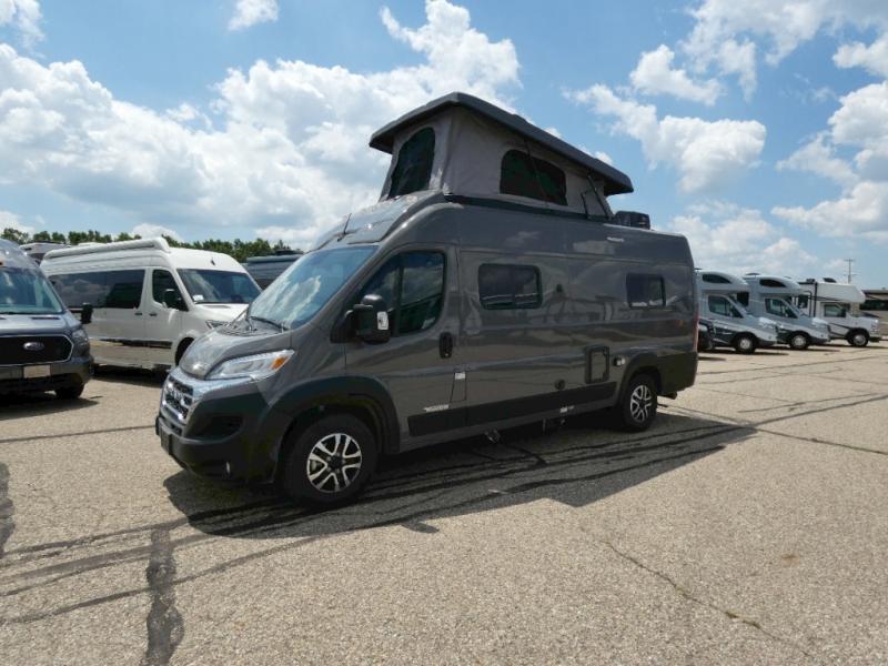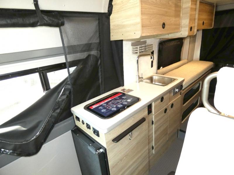 This camper van with an L-track storage system is perfect for those needing more storage space for their hiking and biking gear. You can stay powered up with the 2,800-watt gas generator, and there is a 13,500 BTU air conditioner with directional ducts and dial control that will allow you to come inside to cool off after a trail ride. A Murphy+ bed comes standard, and any guests that tag along can sleep in the pop-top sleeping area! You'll find the wet bath to come in handy when you want to clean up, and the dinette seating with a removable pedestal table will provide a place to enjoy your dinner at.