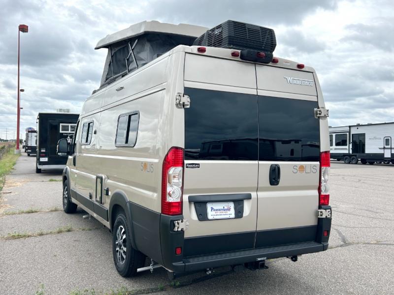 Each Solis Class B gas motorhome by Winnebago sits upon a fuel-efficient Ram ProMaster chassis with a 3.6L V6 engine to power your adventures. You will love the cab conveniences that make each trip enjoyable, like the radio/review monitor system touchscreen and the crosswind assist to keep you steady on the road. Some of the hassle-free amenities you will appreciate are the exterior wash station, the Eco-Hot water system, and the water center control panel located inside the right rear door. Head indoors to find heavy-duty vinyl flooring throughout, a laminate countertop and a stainless steel sink in the galley, plus tinted coach windows for added privacy. The Solis also features off-grid capabilities with its two deep-cycle Group 31 batteries and 220-watt flexible surface solar panel with a controller. Adventures awaits in the Solis Class B gas motorhome!