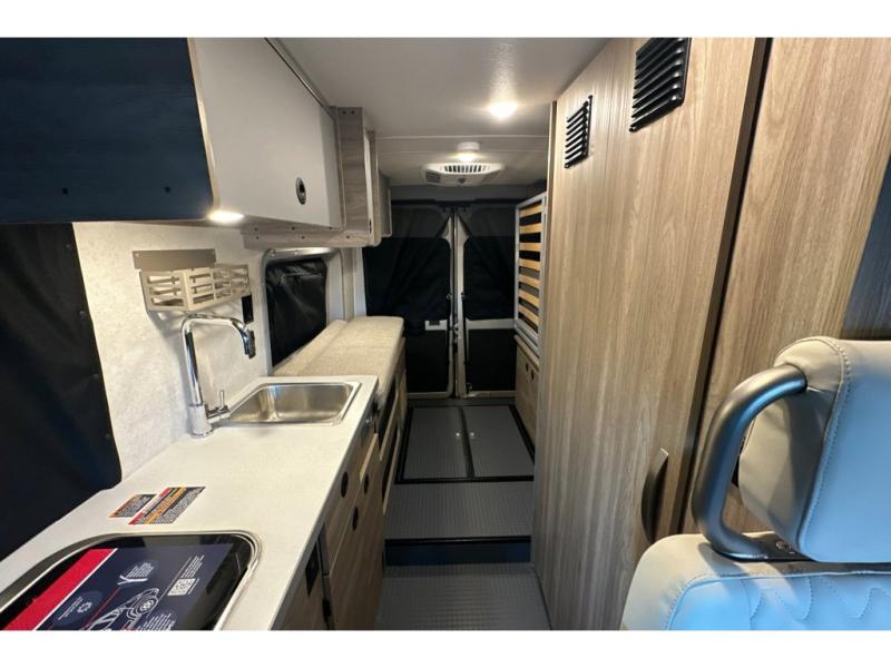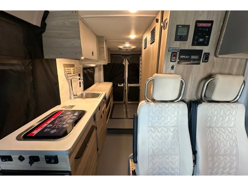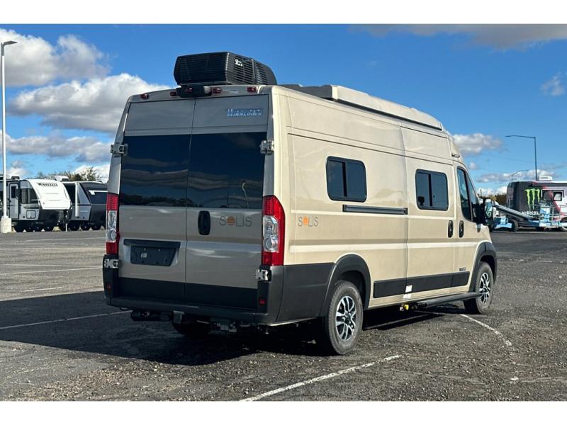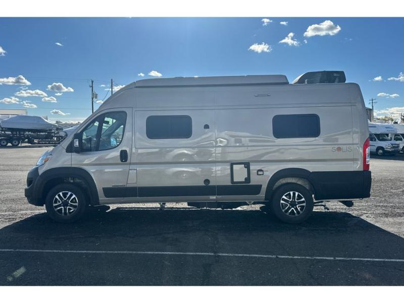 Each Solis Class B gas motorhome by Winnebago sits upon a fuel-efficient Ram ProMaster chassis with a 3.6L V6 engine to power your adventures. You will love the cab conveniences that make each trip enjoyable, like the radio/review monitor system touchscreen and the crosswind assist to keep you steady on the road. Some of the hassle-free amenities you will appreciate are the exterior wash station, the Eco-Hot water system, and the water center control panel located inside the right rear door. Head indoors to find heavy-duty vinyl flooring throughout, a laminate countertop and a stainless steel sink in the galley, plus tinted coach windows for added privacy. The Solis also features off-grid capabilities with its two deep-cycle Group 31 batteries and 220-watt flexible surface solar panel with a controller. Adventures awaits in the Solis Class B gas motorhome!