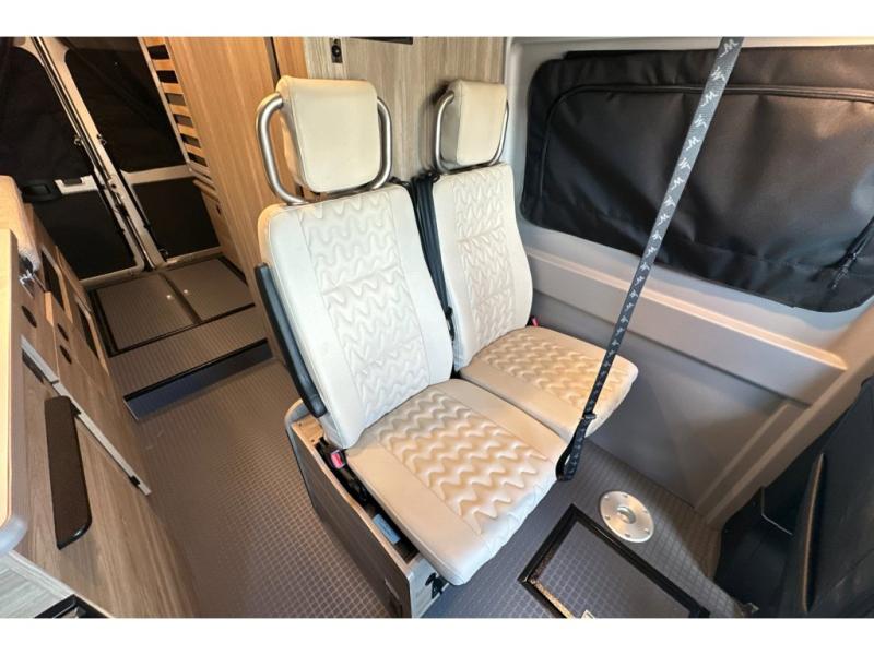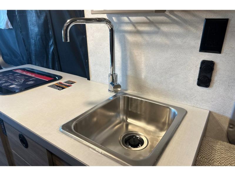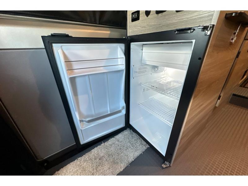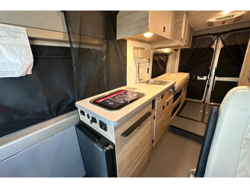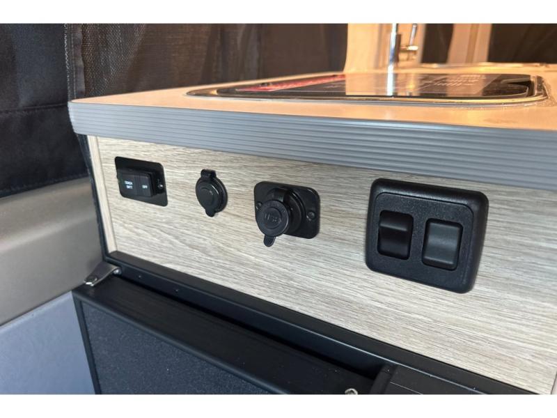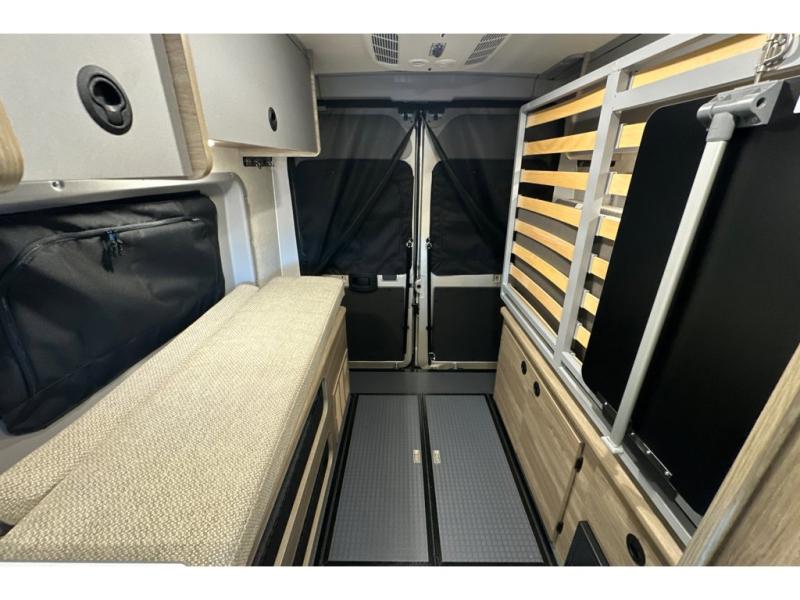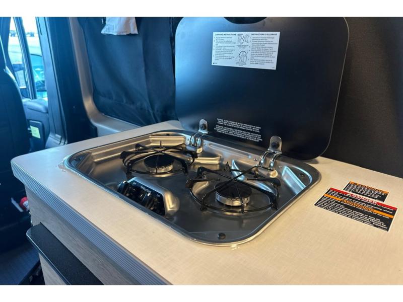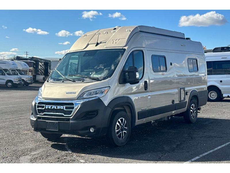 This camper van with an L-track storage system is perfect for those needing more storage space for their hiking and biking gear. You can stay powered up with the 2,800-watt gas generator, and there is a 13,500 BTU air conditioner with directional ducts and dial control that will allow you to come inside to cool off after a trail ride. A Murphy+ bed comes standard, and any guests that tag along can sleep in the pop-top sleeping area! If you choose to remove the pop-top, you'll enjoy the deluxe powered ventilator fan instead. You'll find the wet bath to come in handy when you want to clean up, and the dinette seating with a removable pedestal table will provide a place to enjoy your dinner at.
