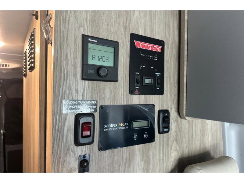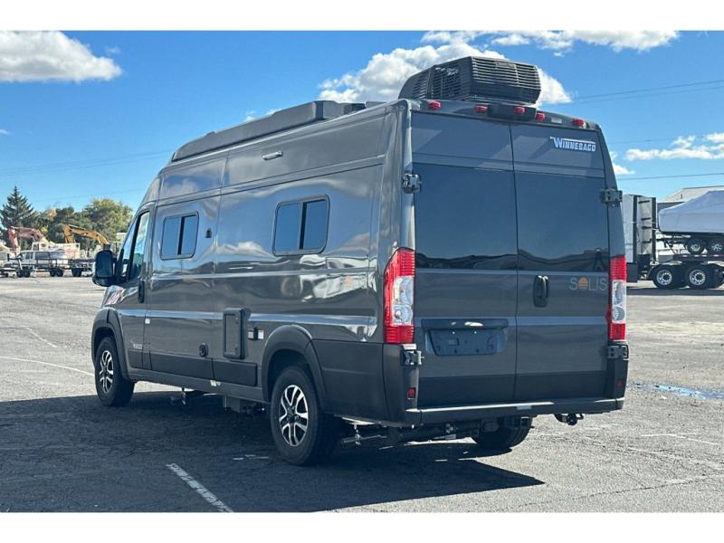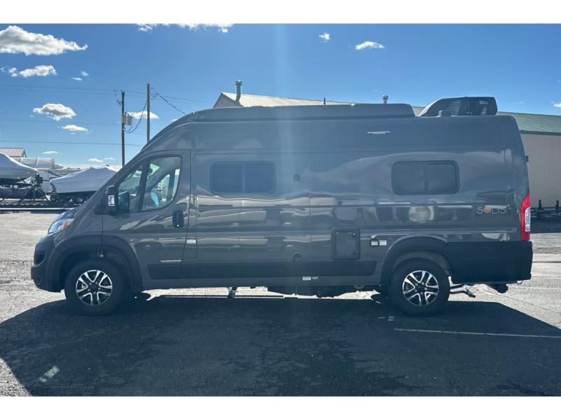 Each Solis Class B gas motorhome by Winnebago sits upon a fuel-efficient Ram ProMaster chassis with a 3.6L V6 engine to power your adventures. You will love the cab conveniences that make each trip enjoyable, like the radio/review monitor system touchscreen and the crosswind assist to keep you steady on the road. Some of the hassle-free amenities you will appreciate are the exterior wash station, the Eco-Hot water system, and the water center control panel located inside the right rear door. Head indoors to find heavy-duty vinyl flooring throughout, a laminate countertop and a stainless steel sink in the galley, plus tinted coach windows for added privacy. The Solis also features off-grid capabilities with its two deep-cycle Group 31 batteries and 220-watt flexible surface solar panel with a controller. Adventures awaits in the Solis Class B gas motorhome!