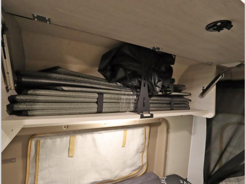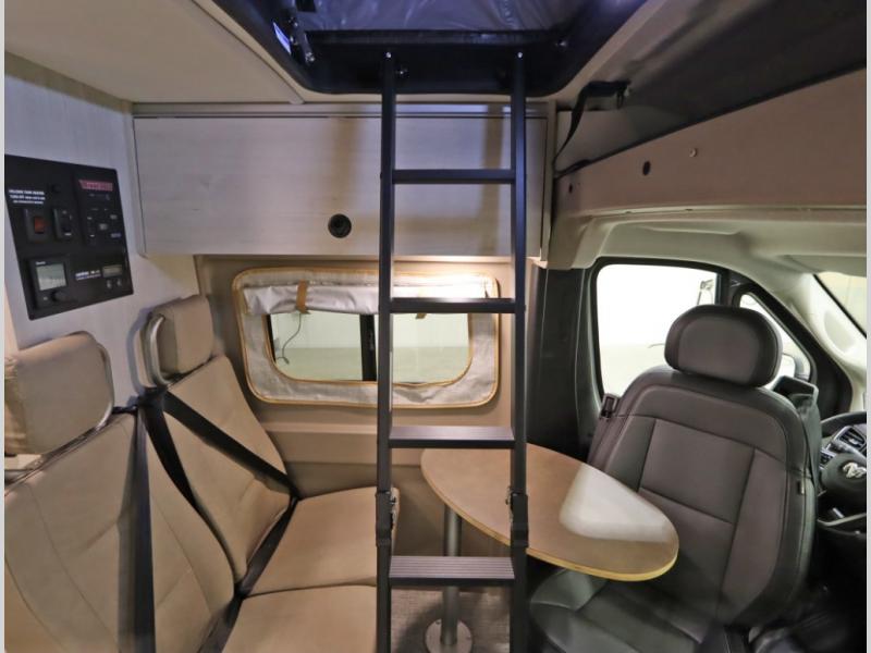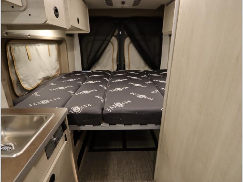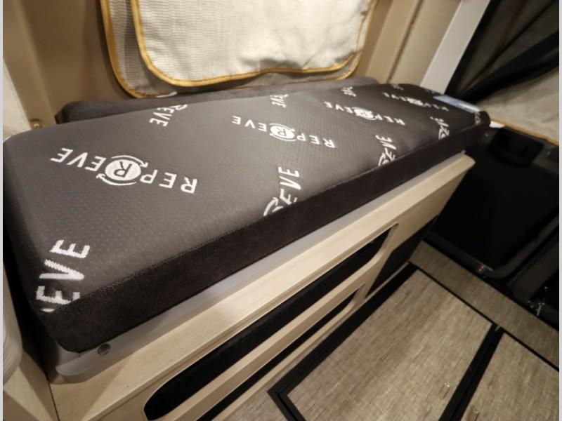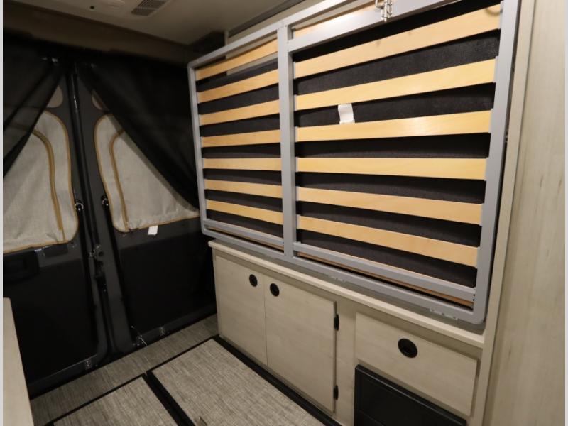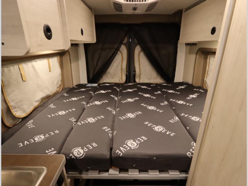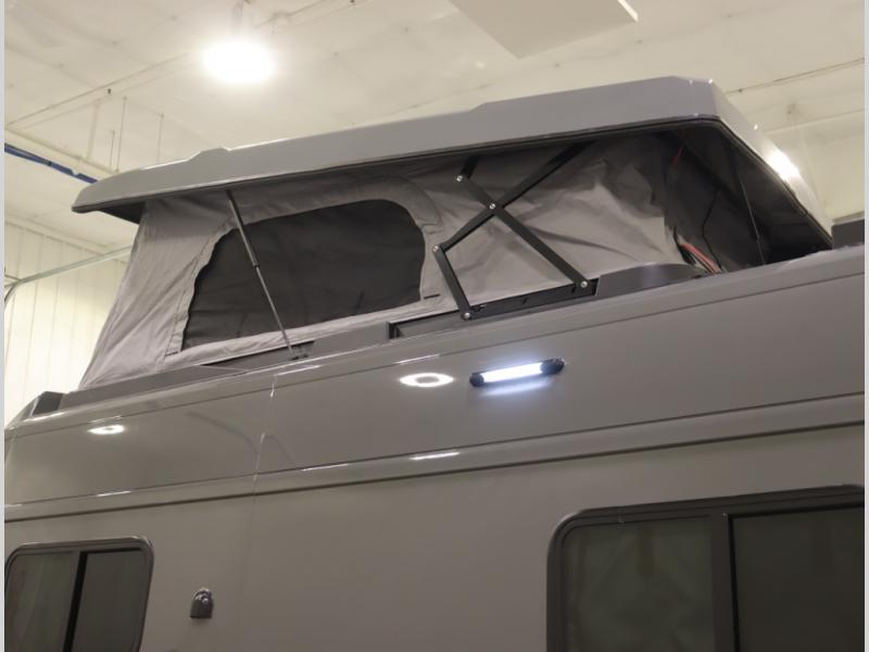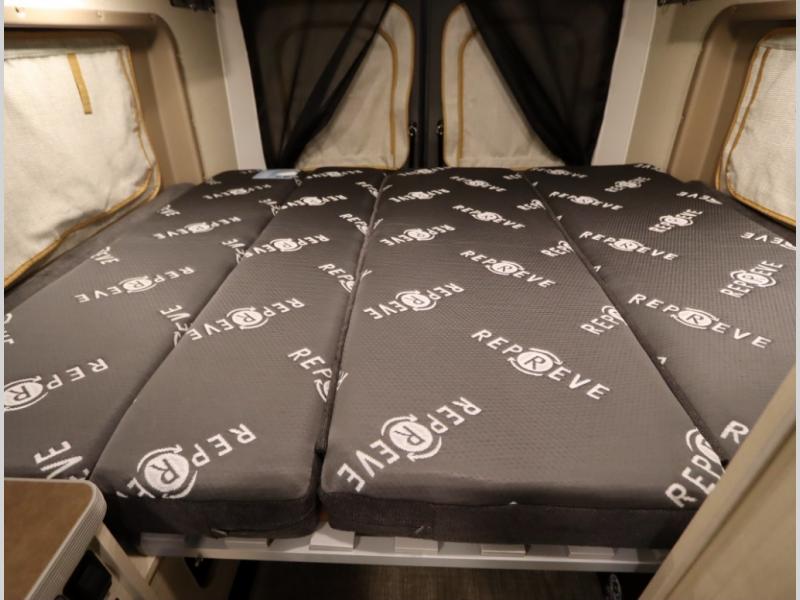 The popular Solis is available with or without the overhead pop top studio loft sleeping surface that includes the Froli deluxe sleep system! Plus you can increase sleeping now with the Luno front cab air mattress for a 30 x 65 in additional sleeping surface.