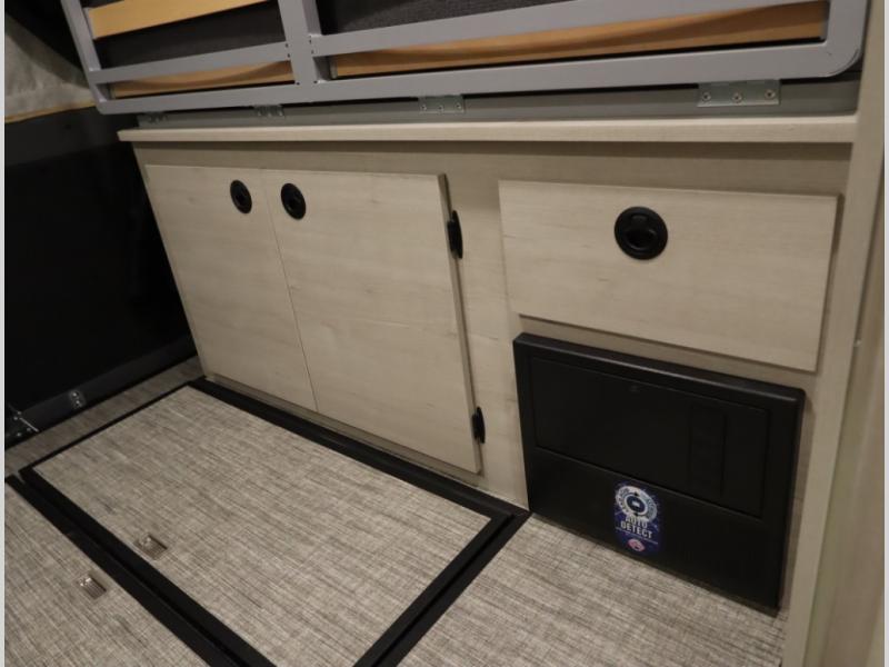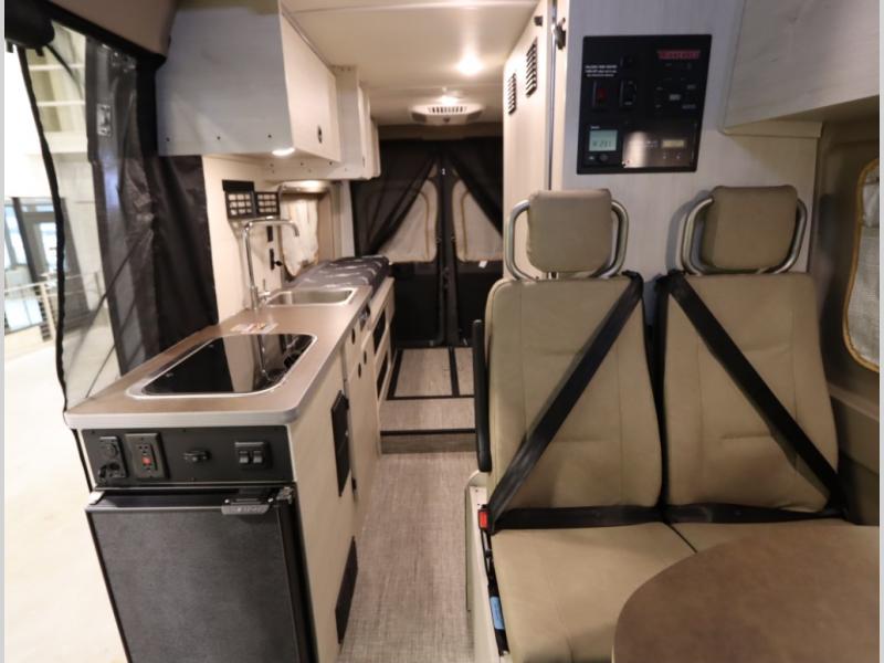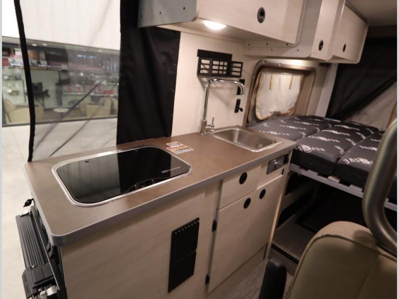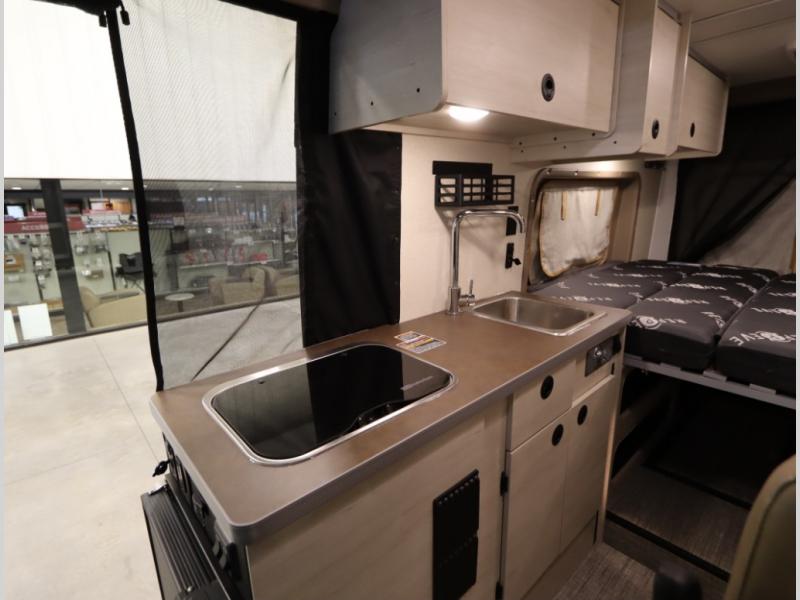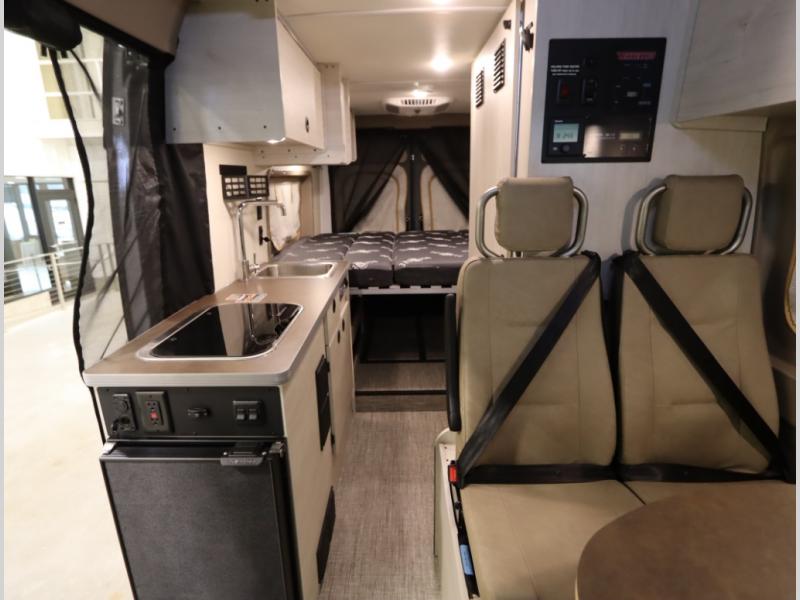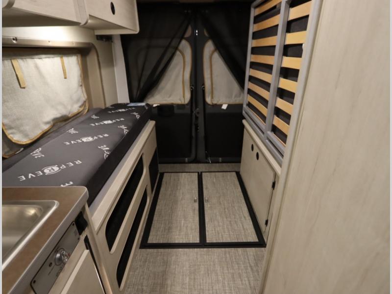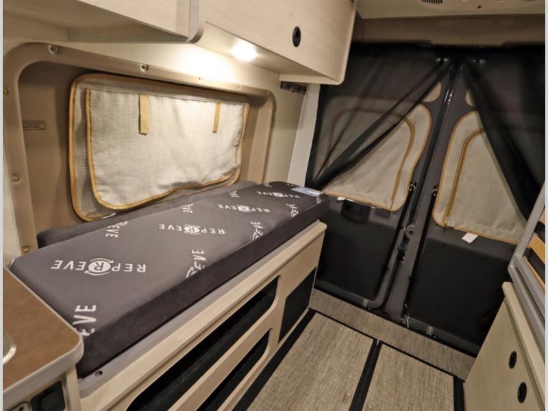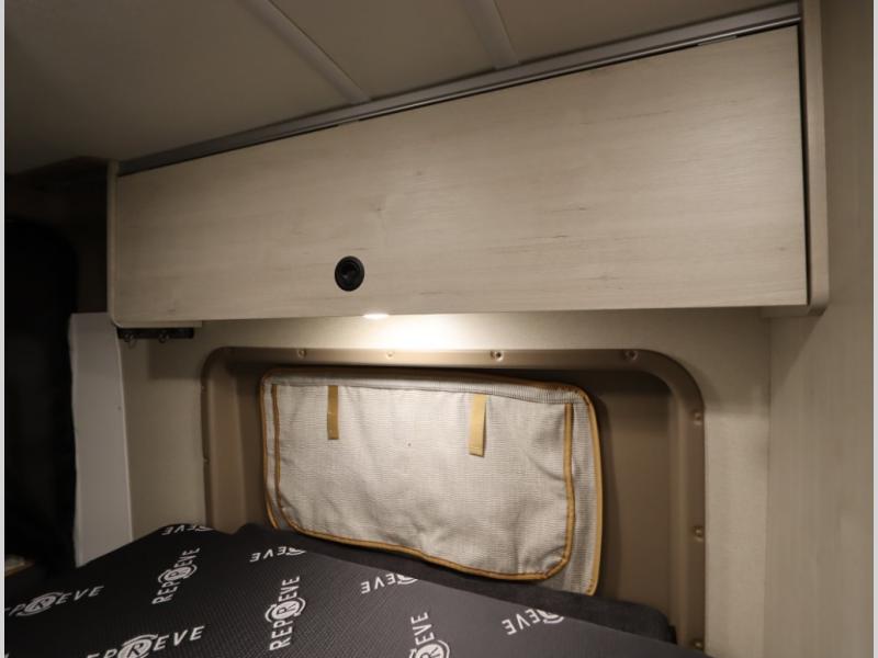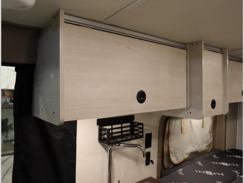 The popular Solis is available with or without the overhead pop top studio loft sleeping surface that includes the Froli deluxe sleep system! Plus you can increase sleeping now with the Luno front cab air mattress for a 30 x 65 in additional sleeping surface.