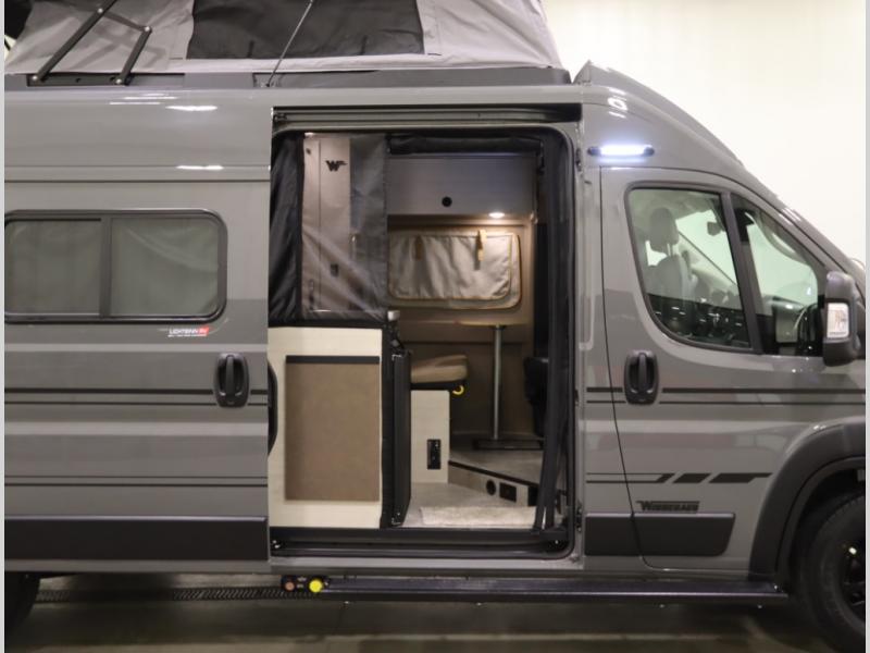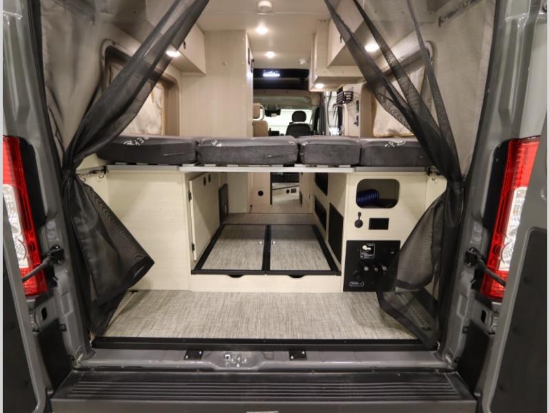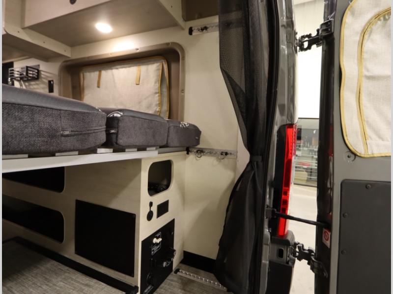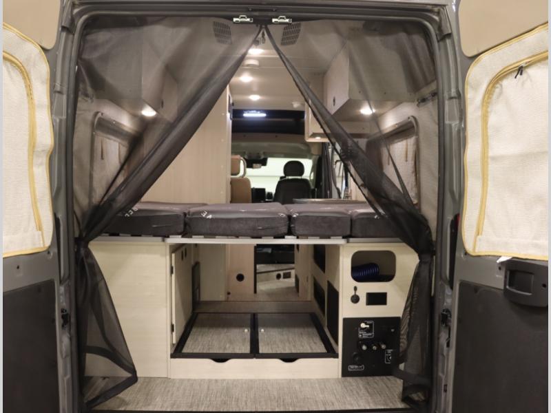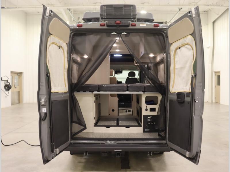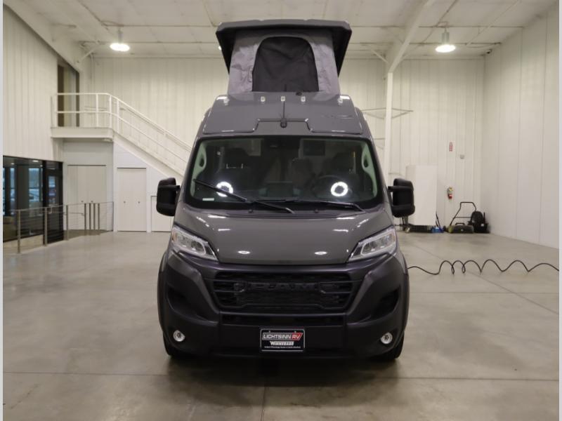 Built on the fuel efficient Ram Promaster chassis, the Solis features all season insulation and plumbing, a space extending rear annex and Truma Combi Eco hydronic heating and on demand hot water with hot water loop purge. In addition to the cross coach sleeping below, the fiberglass studio loft pop top easily expands your sleeping space, offers panoramic views and provides a restful night's sleep with the innovative FROLI sleep system.
