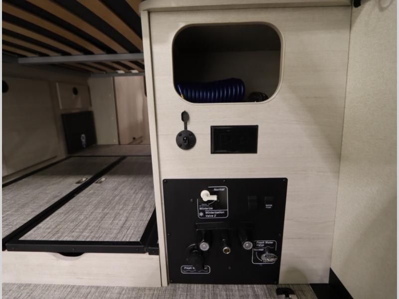 10. An exterior water fill is provided, removing the need to have the rear van doors open or pinching an existing hose, yet can be valved off in cold weather use