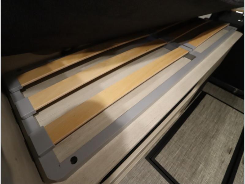 As versatile as it is comfortable, enjoy the view as you work or play with the versatile workstation, and then call it a night in the rear Murphy Bed with European slat sleep system!