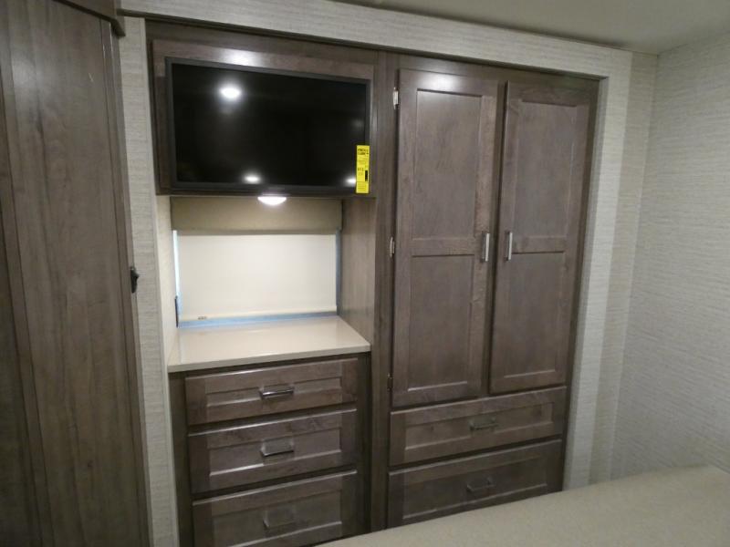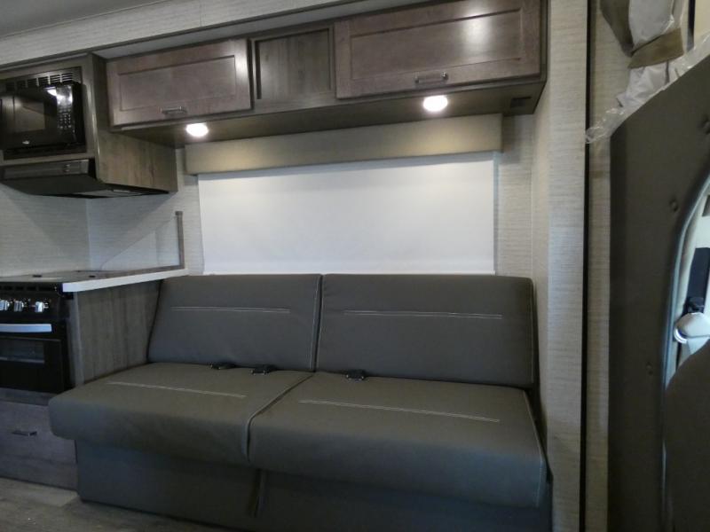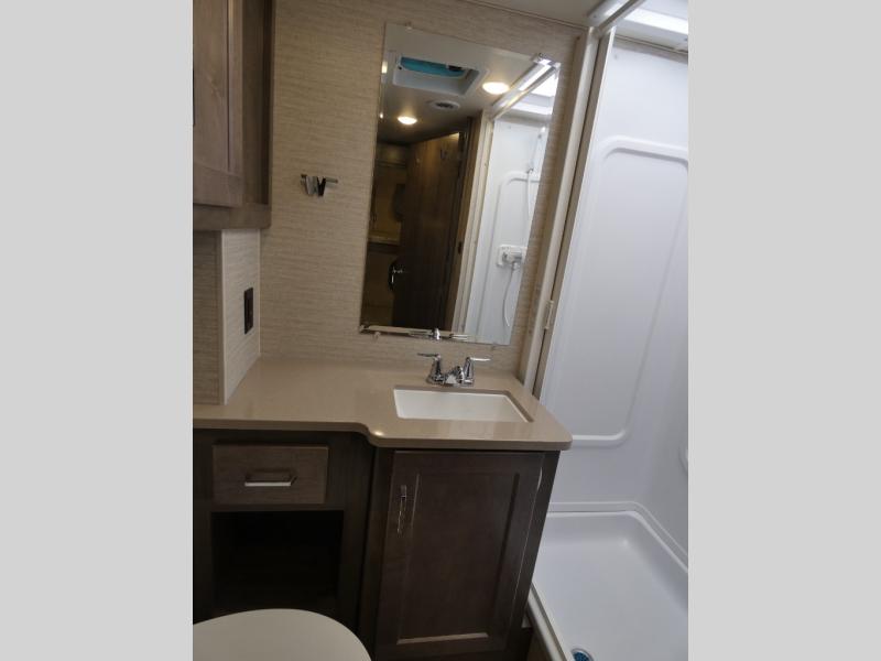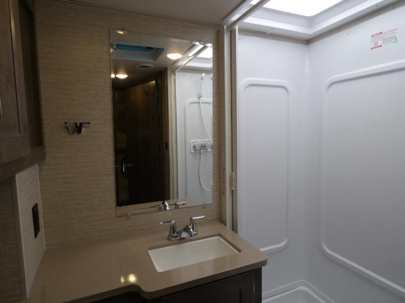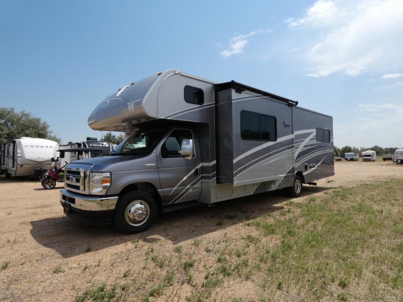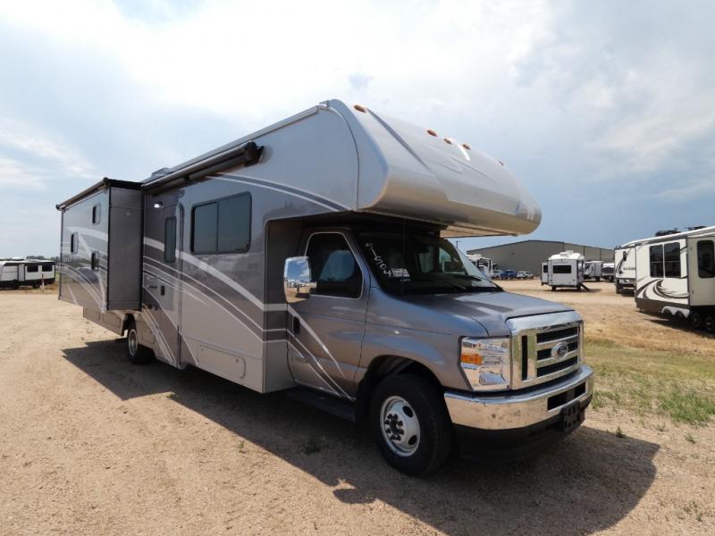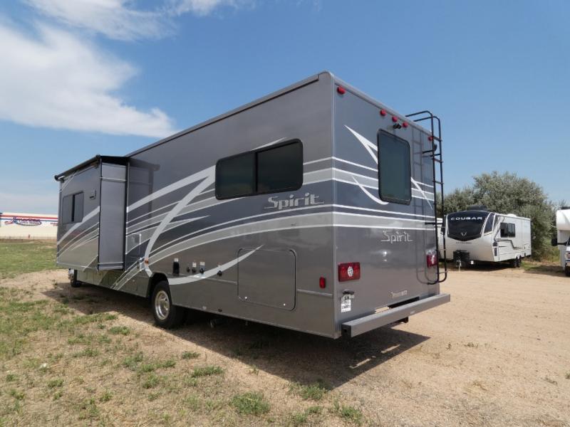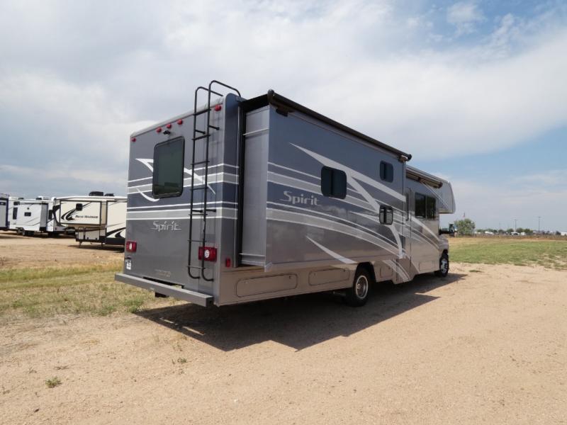 Each Spirit Class C gas motorhome by Winnebago features a powerful 7.3L V8 premium engine with a durable Ford E450 chassis. The exterior is eye-catching with its premium high-gloss fiberglass skin, along with the molded front cap, and your choice of four exterior color options. Your journey will be made enjoyable by the multi-adjustable slide/recline cab seats, and the radio/rearview monitor system includes an 8.95" multi-function touchscreen with a rear color camera for easy maneuvering in and out of campgrounds. Each model includes Corian solid surface countertops, vinyl flooring throughout, black-out roller shades, plus many more comforts you won't want to camp without!