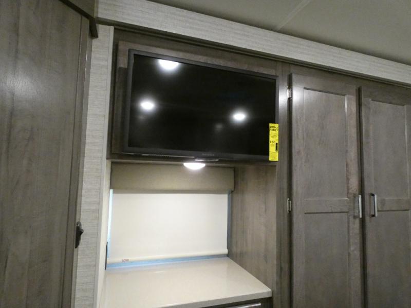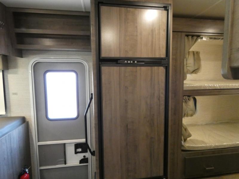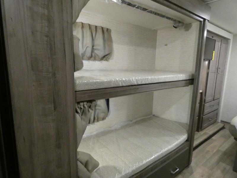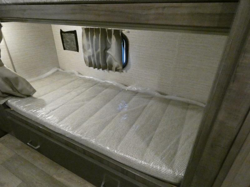 If you've been searching for a coach to sleep your crew of eight, look no further than this 31H Spirit model with bunk beds! The bunks include a convenient storage compartment and privacy curtains, plus they are right across from the full bath for nighttime use. You will love having the rear private bedroom all to yourselves with an RV queen bed, dual nightstands, plus a chest of drawers for added storage. And your other guests can sleep on the sofa bed, U-shaped dinette, and cabover bunk. The full kitchen includes everything you need to prepare meals each day, including a microwave oven, a three burner cooktop, plus an 8 cu. ft. large double door refrigerator/freezer.