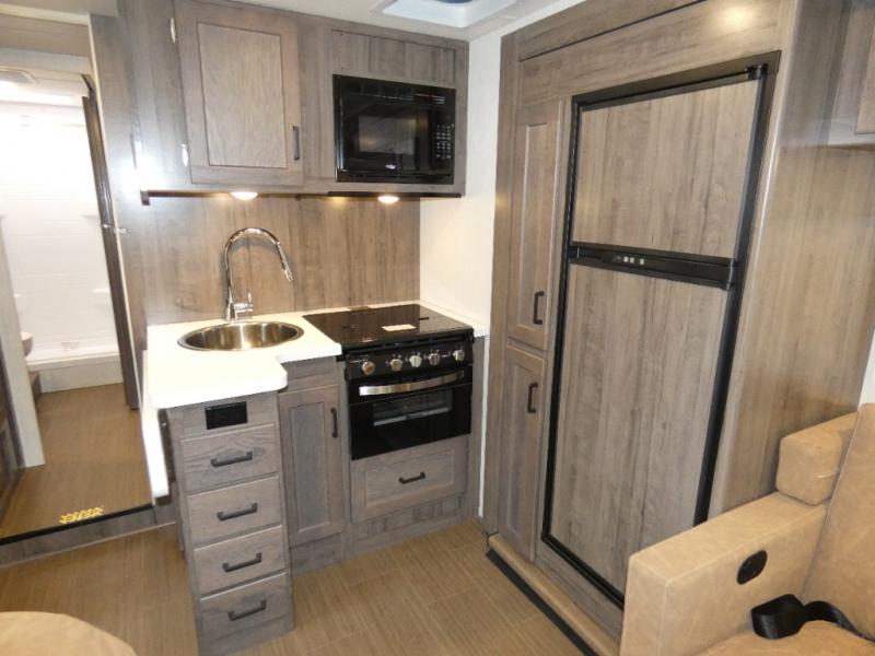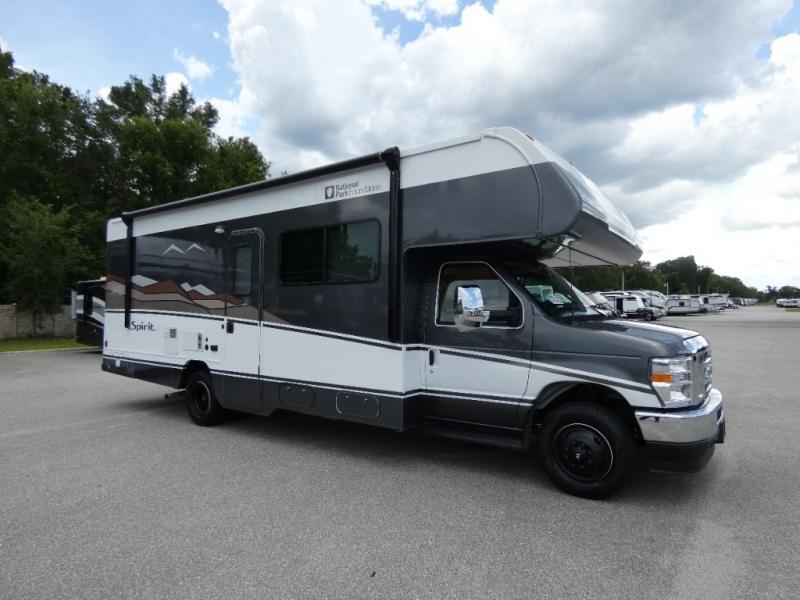 Explore the beautiful national parks with the Spirit NPF Limited Edition Class A gas motorhome by Winnebago. The compact build is designed to fit most park campsites, and you're sure to turn heads with the exclusive National Park themed deluxe exterior graphics. You will also appreciate the large lighted trunk storage compartment for your camp gear, a powered awning with LED lighting, plus 240-watts of solar power for off-grid capabilities. You can stay connected wherever you roam with the radio/review monitor system that includes a 10" multi-function touchscreen monitor and rear camera, Bluetooth, and more! There is space for everyone inside to relax in comfort, including sleeping for six, and the galley kitchen will let you create your best home-cooked meals. This coach also includes vinyl flooring throughout, Corian solid surface countertops, plus a flexible showerhead and a bath skylight to name a few comforts!