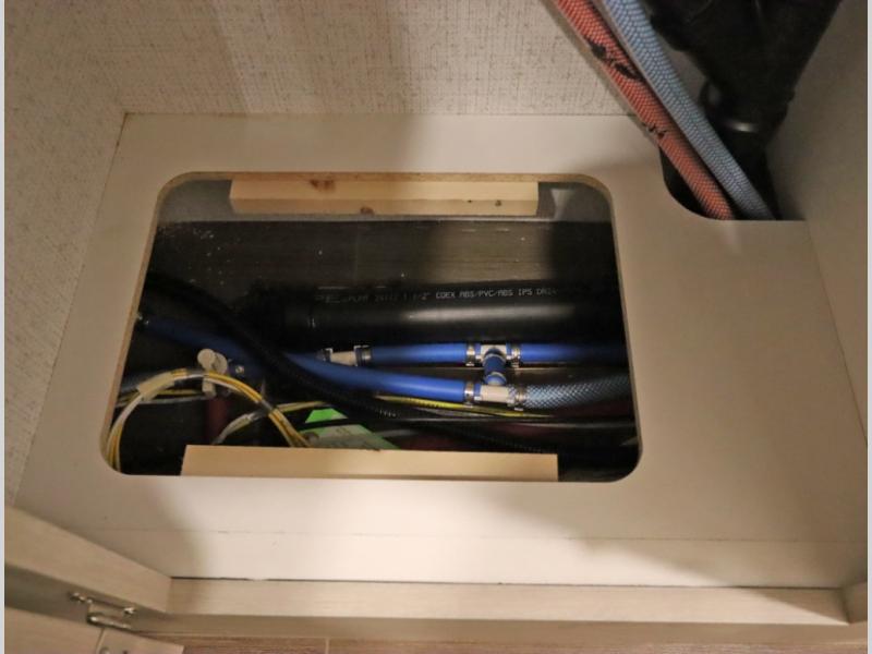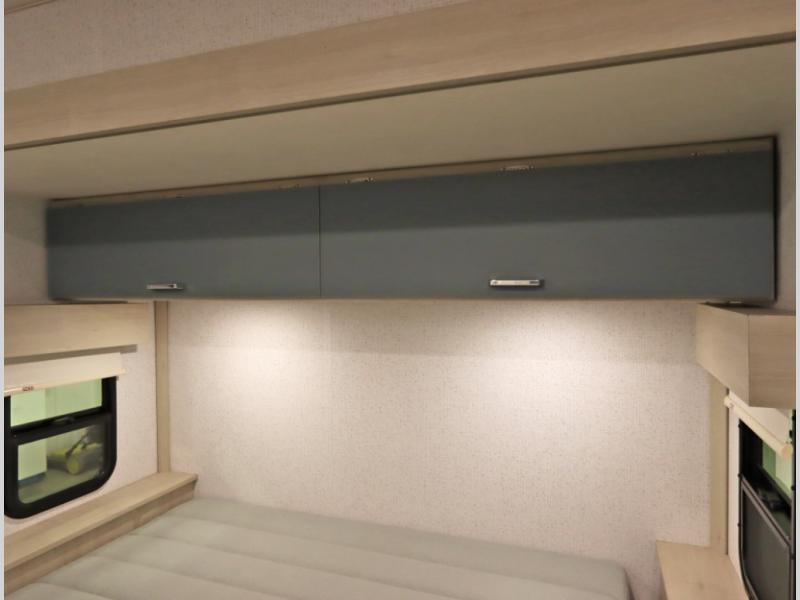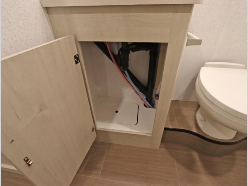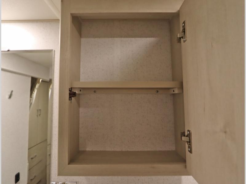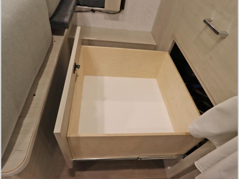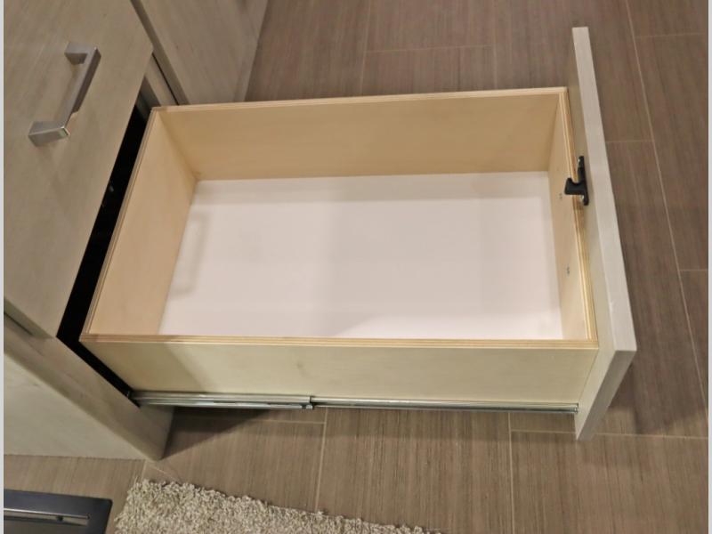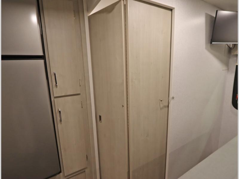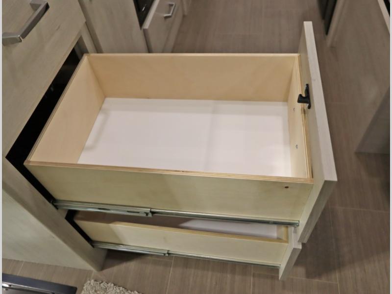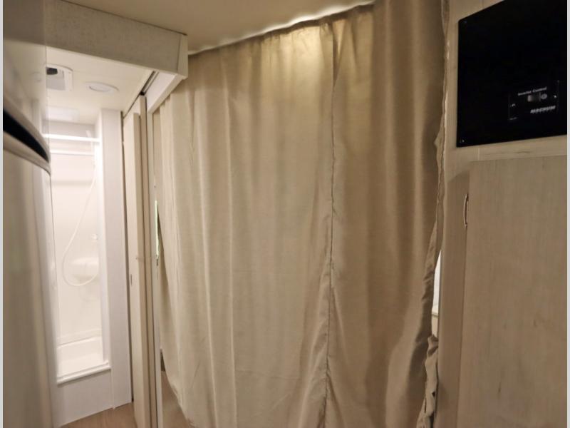 Convenient Amenities: The convection microwave with a built-in air fryer saves space, while flat floor designs enhance movement throughout the coach.
