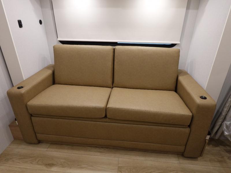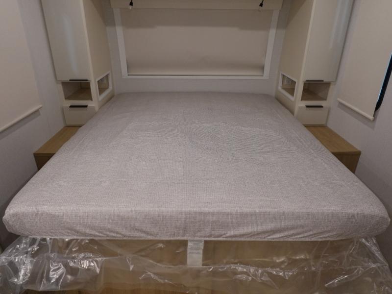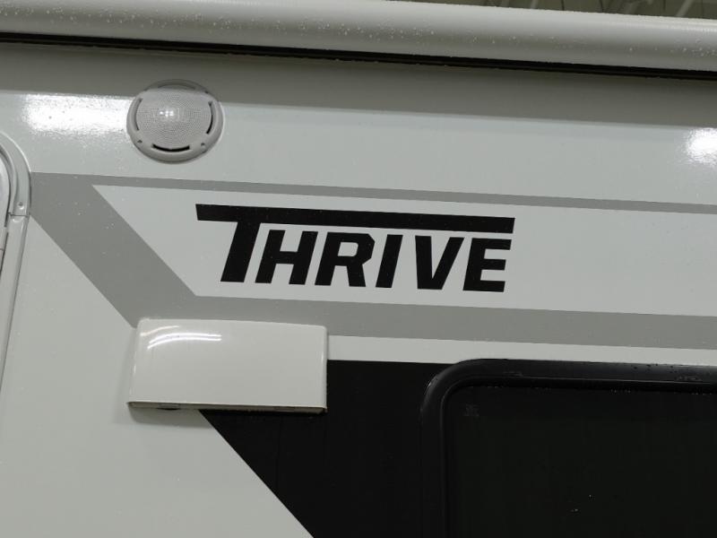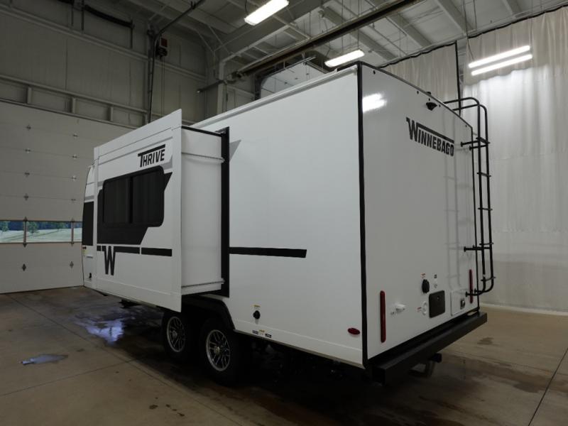 With any Thrive travel trailer by Winnebago, you can camp with functionality, comfort, and convenience! The tinted and frameless front window will be the first thing that catches your eye, and the fiberglass sidewalls with Azdel Onboard provide a durable trailer made to last. There is also an exterior ladder, along with front radius profile lights, power stabilizer jacks, and a powered awning with LED lighting to name a few exterior features. You will stay powered up by the 30-amp power cord and 200-watt solar panel, plus there is a tankless water heater for endless hot showers. Inside, you'll love the custom Winnebago furniture, carpetless side outs, molded fiberglass countertops, and residential recessed ceiling lights to keep your space well lit!