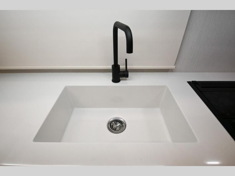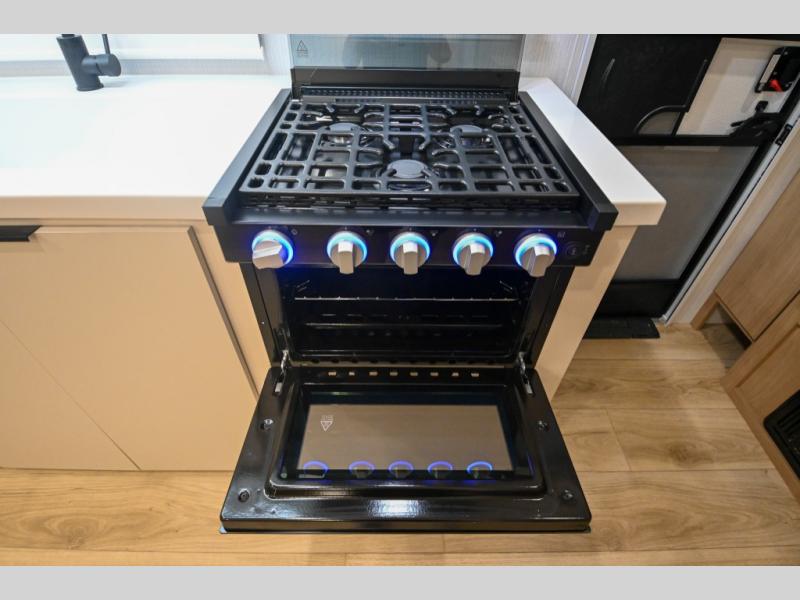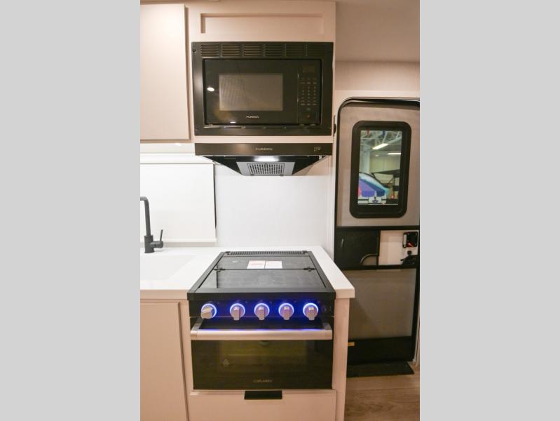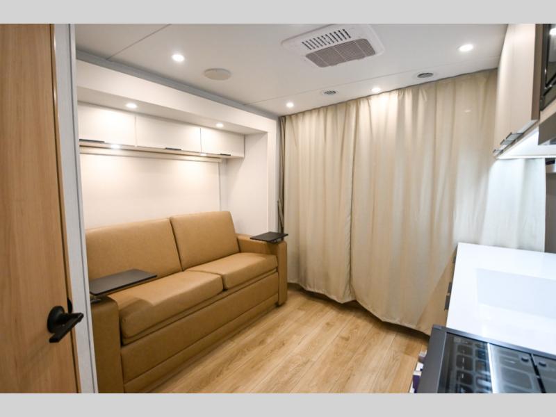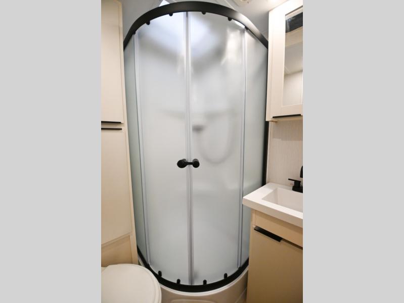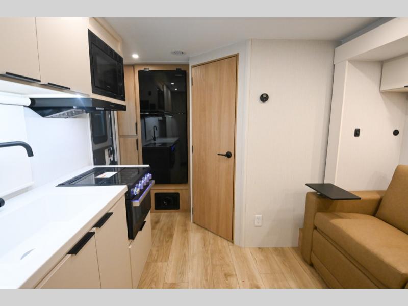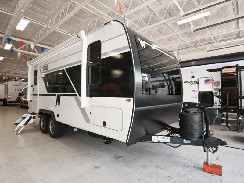 With any Thrive travel trailer by Winnebago, you can camp with functionality, comfort, and convenience! The tinted and frameless front window will be the first thing that catches your eye, and the fiberglass sidewalls with Azdel Onboard provide a durable trailer made to last. There is also an exterior ladder, along with front radius profile lights, power stabilizer jacks, and a powered awning with LED lighting to name a few exterior features. You will stay powered up by the 30-amp power cord and 200-watt solar panel, plus there is a tankless water heater for endless hot showers. Inside, you'll love the custom Winnebago furniture, carpetless side outs, molded fiberglass countertops, and residential recessed ceiling lights to keep your space well lit!