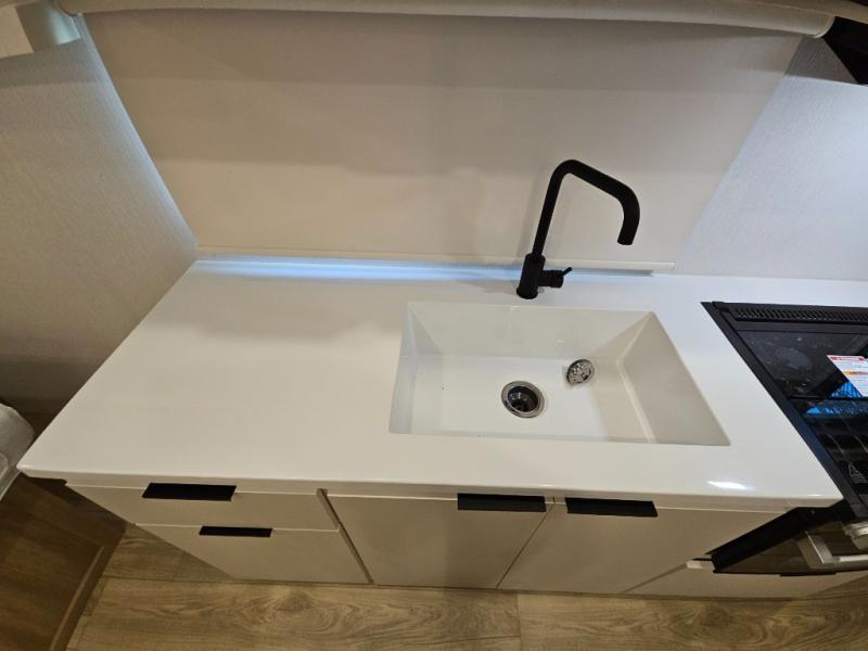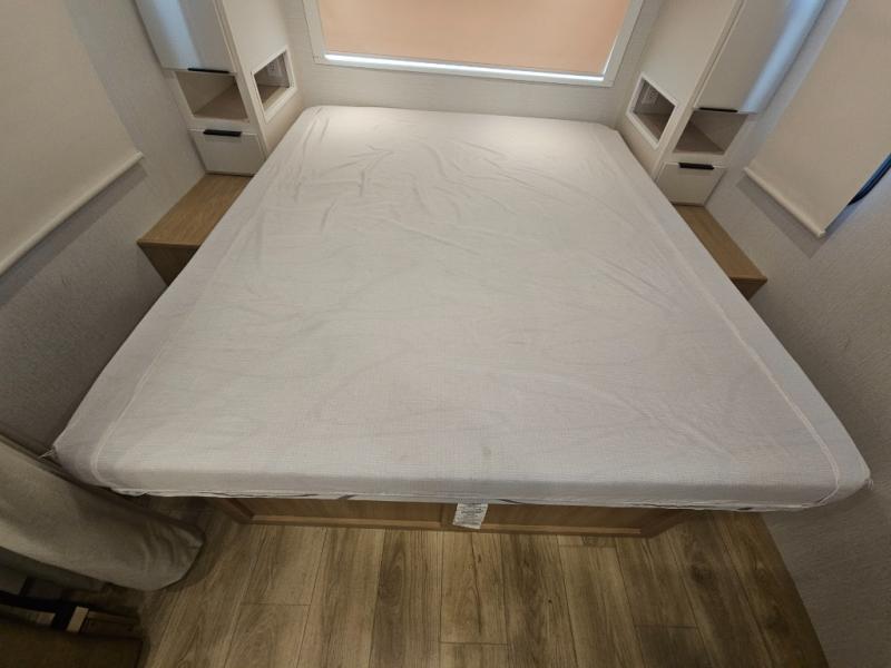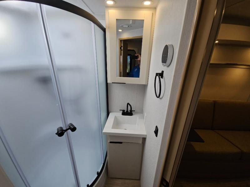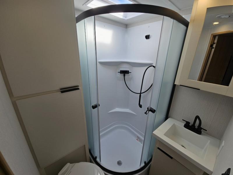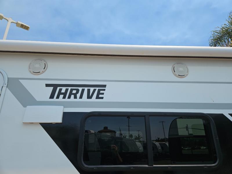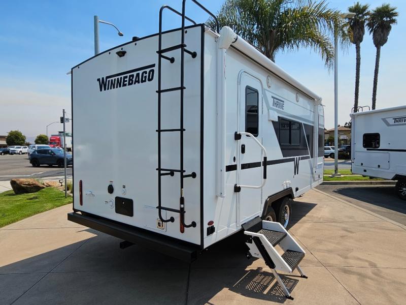 With any Thrive travel trailer by Winnebago, you can camp with functionality, comfort, and convenience! The tinted and frameless front window will be the first thing that catches your eye, and the fiberglass sidewalls with Azdel Onboard provide a durable trailer made to last. There is also an exterior ladder, along with front radius profile lights, power stabilizer jacks, and a powered awning with LED lighting to name a few exterior features. You will stay powered up by the 30-amp power cord and 200-watt solar panel, plus there is a tankless water heater for endless hot showers. Inside, you'll love the custom Winnebago furniture, carpetless side outs, molded fiberglass countertops, and residential recessed ceiling lights to keep your space well lit!