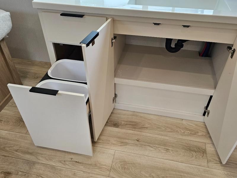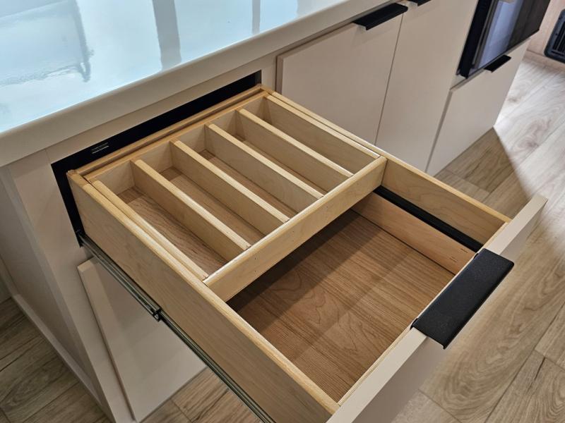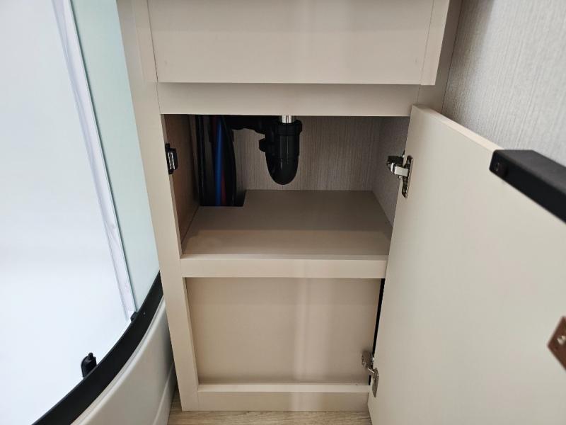 Carpetless slide-outs and molded fiberglass countertops for a sleek, easy-to-clean finish.