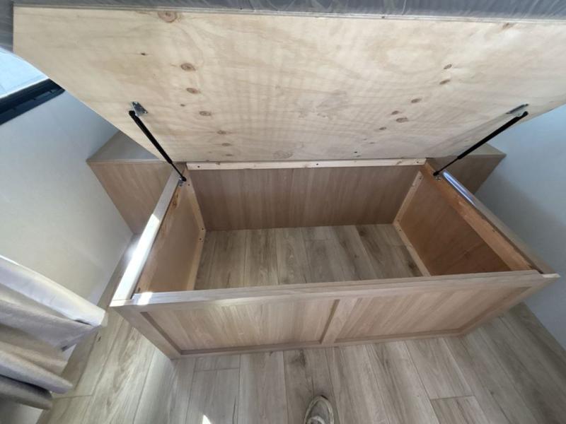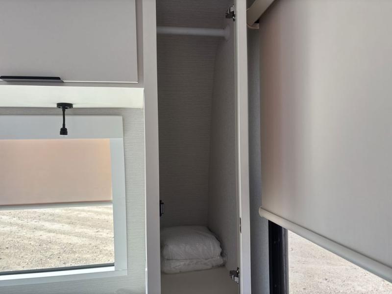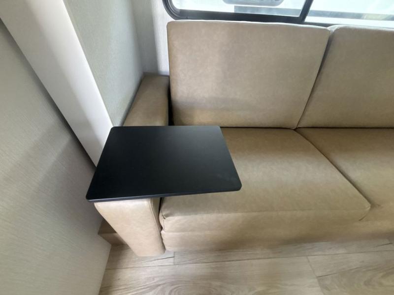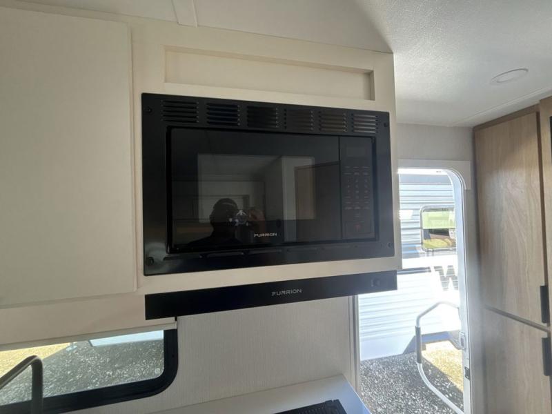 With any Thrive travel trailer by Winnebago, you can camp with functionality, comfort, and convenience! The large front viewing window will be the first thing that catches your eye, and the fiberglass sidewalls with Azdel Onboard provide a durable trailer made to last. There is also an exterior ladder, along with front radius profile lights, power stabilizer jacks, and a powered awning with LED lighting to name a few exterior features. You will stay powered up by the 30-amp power cord and 200-watt solar panel, plus there is a tankless water heater for endless hot showers. Inside, you'll love the custom Winnebago furniture, carpetless side outs, molded fiberglass countertops, and residential recessed ceiling lights to keep your space well lit!