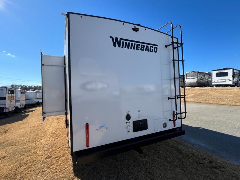 With any Thrive travel trailer by Winnebago, you can camp with functionality, comfort, and convenience! The large front viewing window will be the first thing that catches your eye, and the fiberglass sidewalls with Azdel Onboard provide a durable trailer made to last. There is also an exterior ladder, along with front radius profile lights, power stabilizer jacks, and a powered awning with LED lighting to name a few exterior features. You will stay powered up by the 30-amp power cord and 200-watt solar panel, plus there is a tankless water heater for endless hot showers. Inside, you'll love the custom Winnebago furniture, carpetless side outs, molded fiberglass countertops, and residential recessed ceiling lights to keep your space well lit!