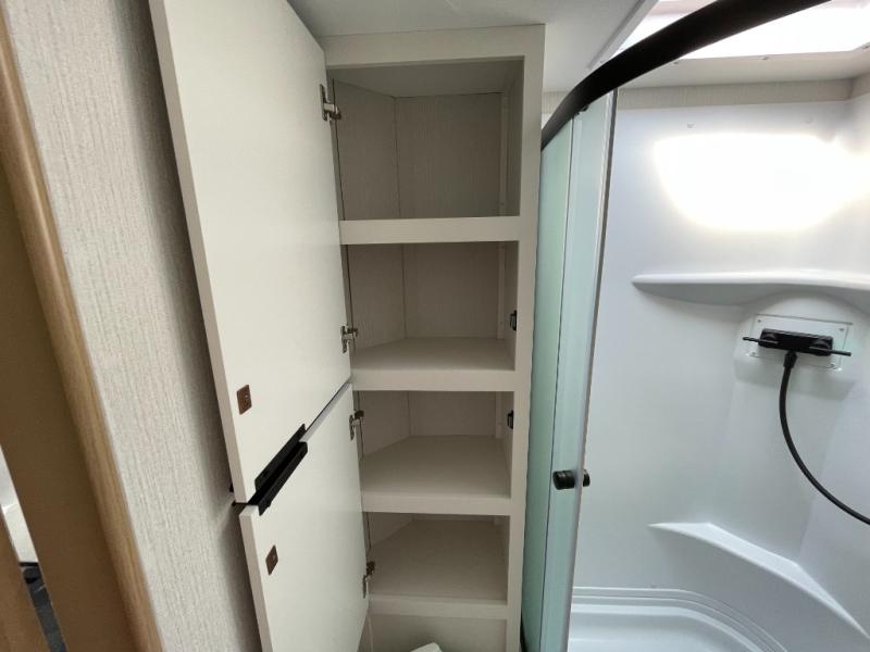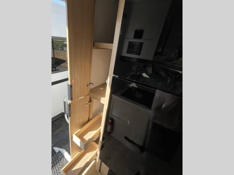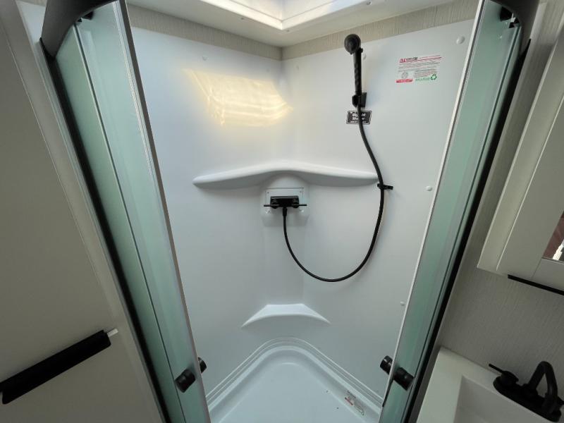 It will be so easy to enjoy camping trips in this compact travel trailer. The jack knife sofa slide provides more floor space plus a place for an overnight guest to sleep. You'll find an Olympic queen bed up front with a privacy curtain and dual bedroom wardrobes to keep your things tidy. A recessed three burner cooktop with an oven will let you make meals each day, and the 10.6 cu. ft. 12V refrigerator will keep your cold items fresh. There is also a pantry with pull-out shelves for added storage space. The full bath includes a power vent fan and a shower skylight that will give you more lighting and extra head room as you get ready each day!