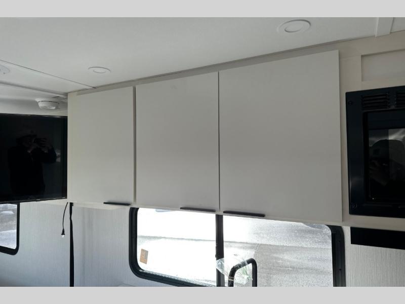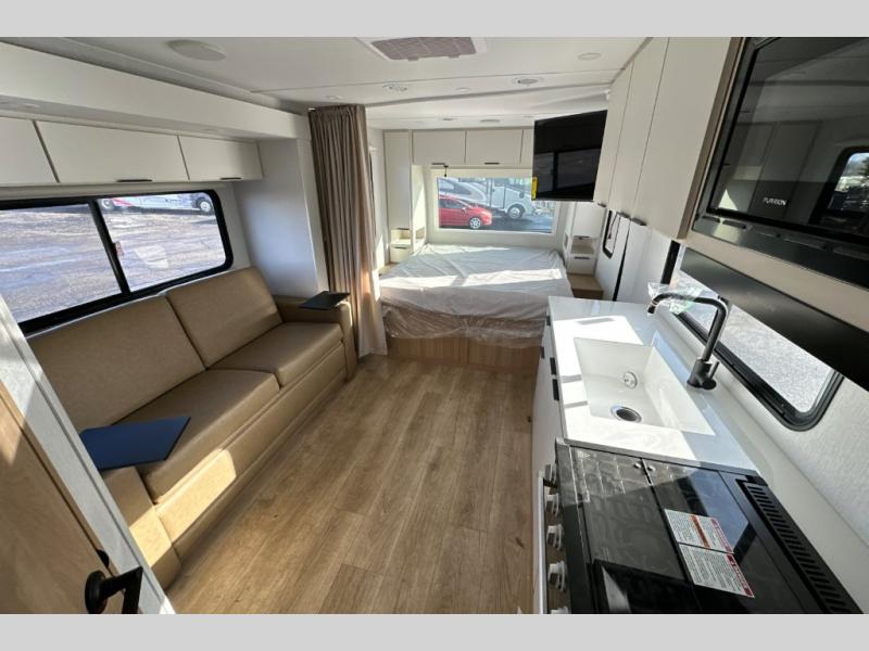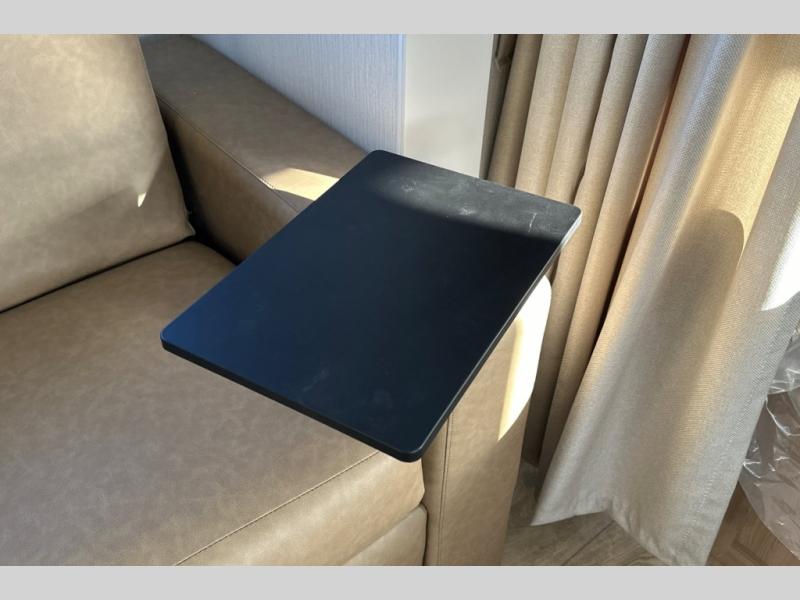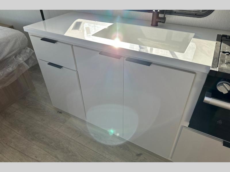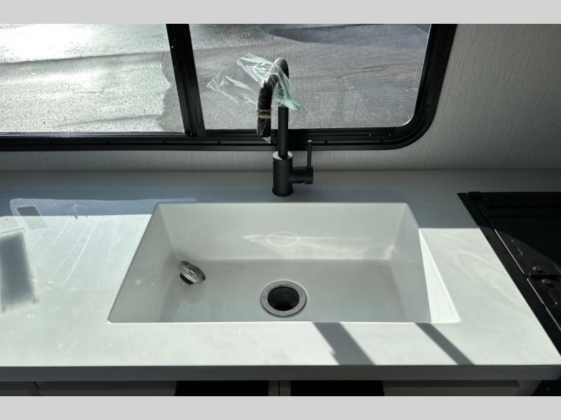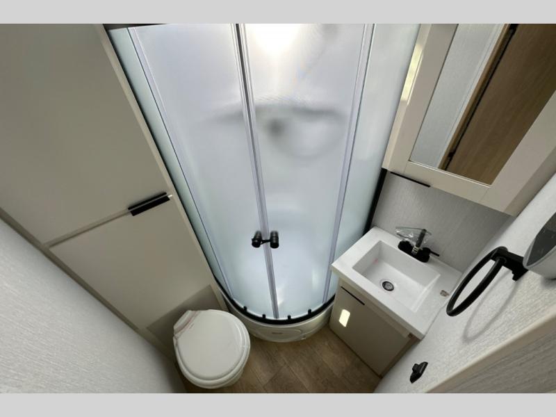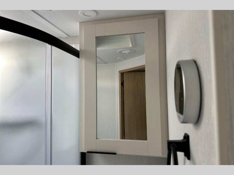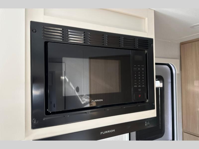 With any Thrive travel trailer by Winnebago, you can camp with functionality, comfort, and convenience! The large front viewing window will be the first thing that catches your eye, and the fiberglass sidewalls with Azdel Onboard provide a durable trailer made to last. There is also an exterior ladder, along with front radius profile lights, power stabilizer jacks, and a powered awning with LED lighting to name a few exterior features. You will stay powered up by the 30-amp power cord and 200-watt solar panel, plus there is a tankless water heater for endless hot showers. Inside, you'll love the custom Winnebago furniture, carpetless side outs, molded fiberglass countertops, and residential recessed ceiling lights to keep your space well lit!