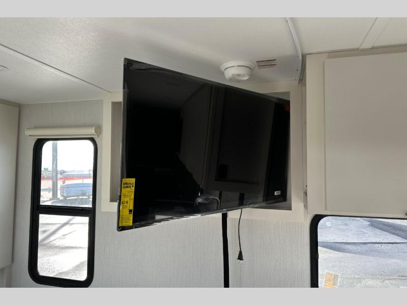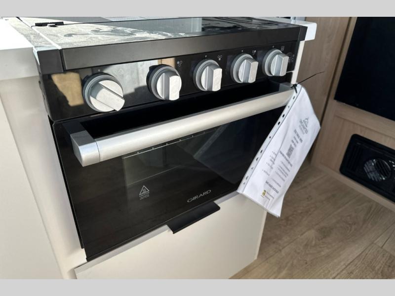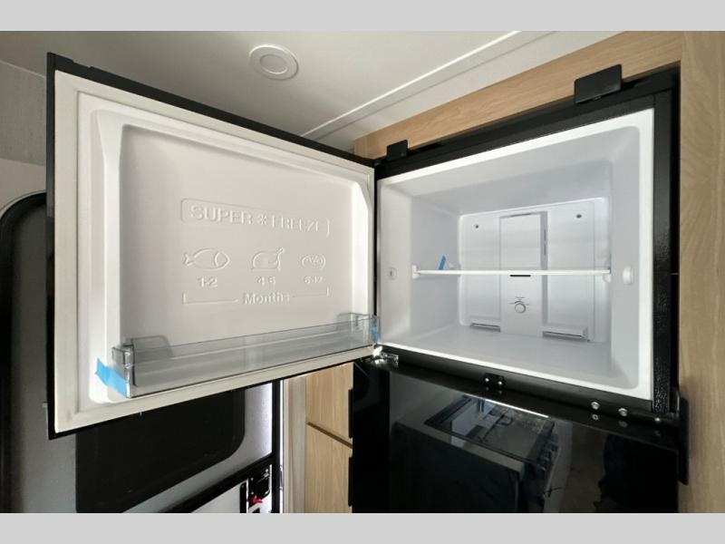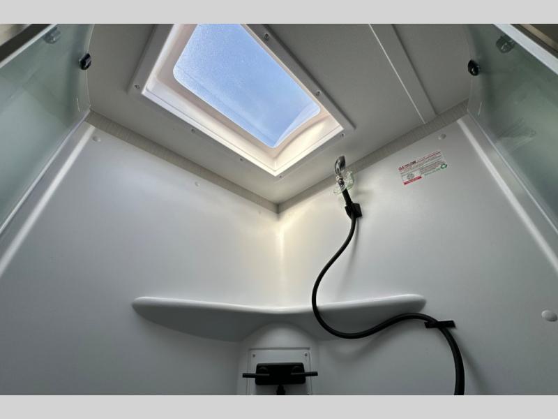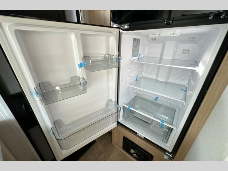 It will be so easy to enjoy camping trips in this compact travel trailer. The jack knife sofa slide provides more floor space plus a place for an overnight guest to sleep. You'll find an Olympic queen bed up front with a privacy curtain and dual bedroom wardrobes to keep your things tidy. A recessed three burner cooktop with an oven will let you make meals each day, and the 10.6 cu. ft. 12V refrigerator will keep your cold items fresh. There is also a pantry with pull-out shelves for added storage space. The full bath includes a power vent fan and a shower skylight that will give you more lighting and extra head room as you get ready each day!