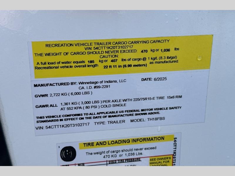 New 2026 Winnebago Thrive 18FBS Travel Trailer